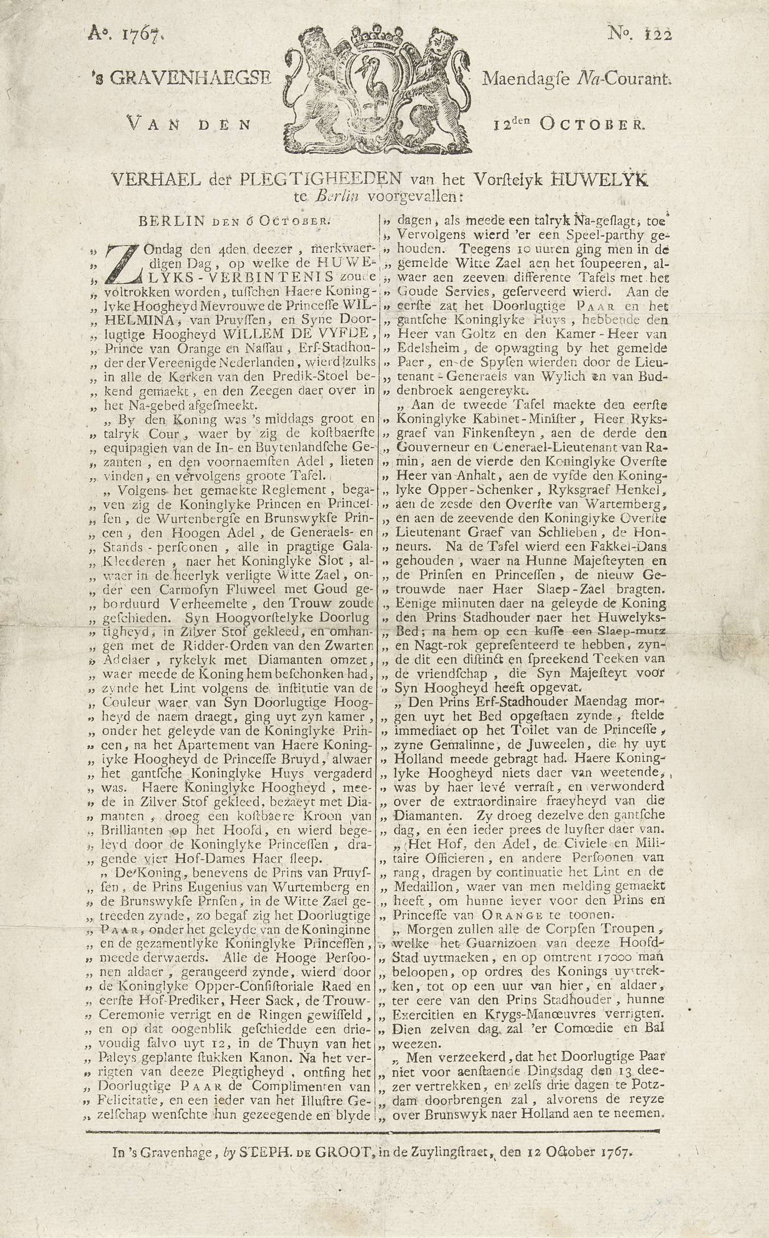 Extra editie van de 's Gravenhaegse Courant bij het ...