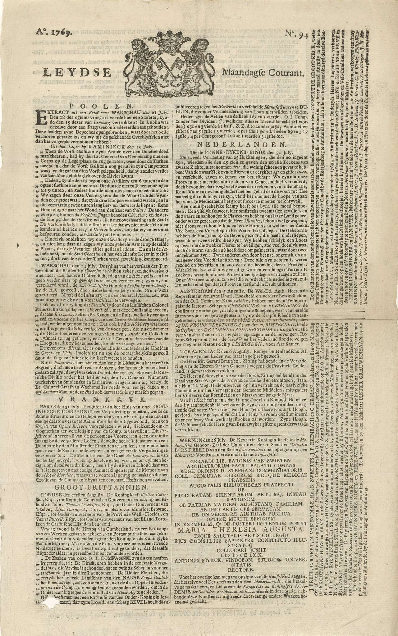 Leydse Maandagse Courant. Ao. 1769. No. 94