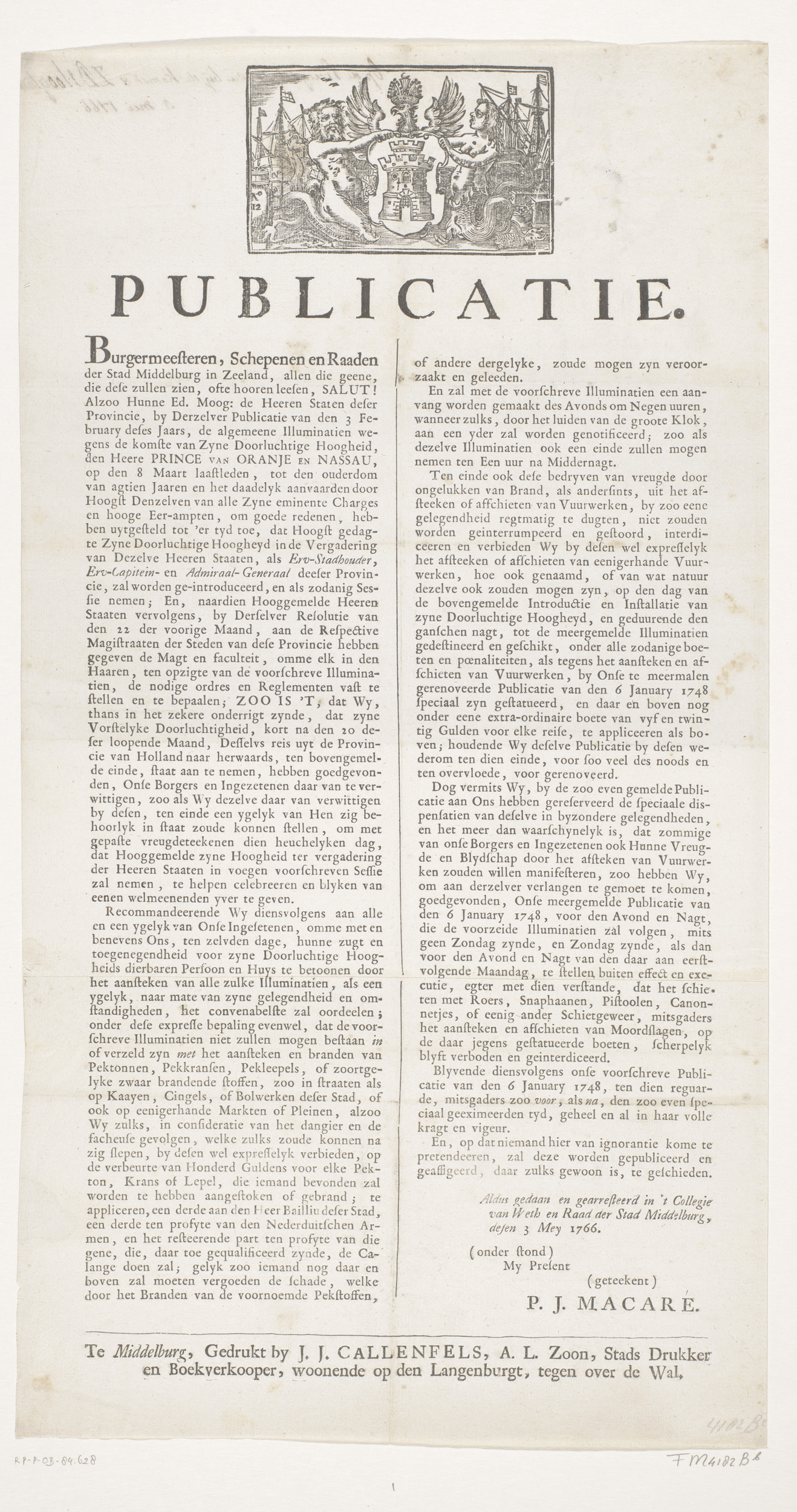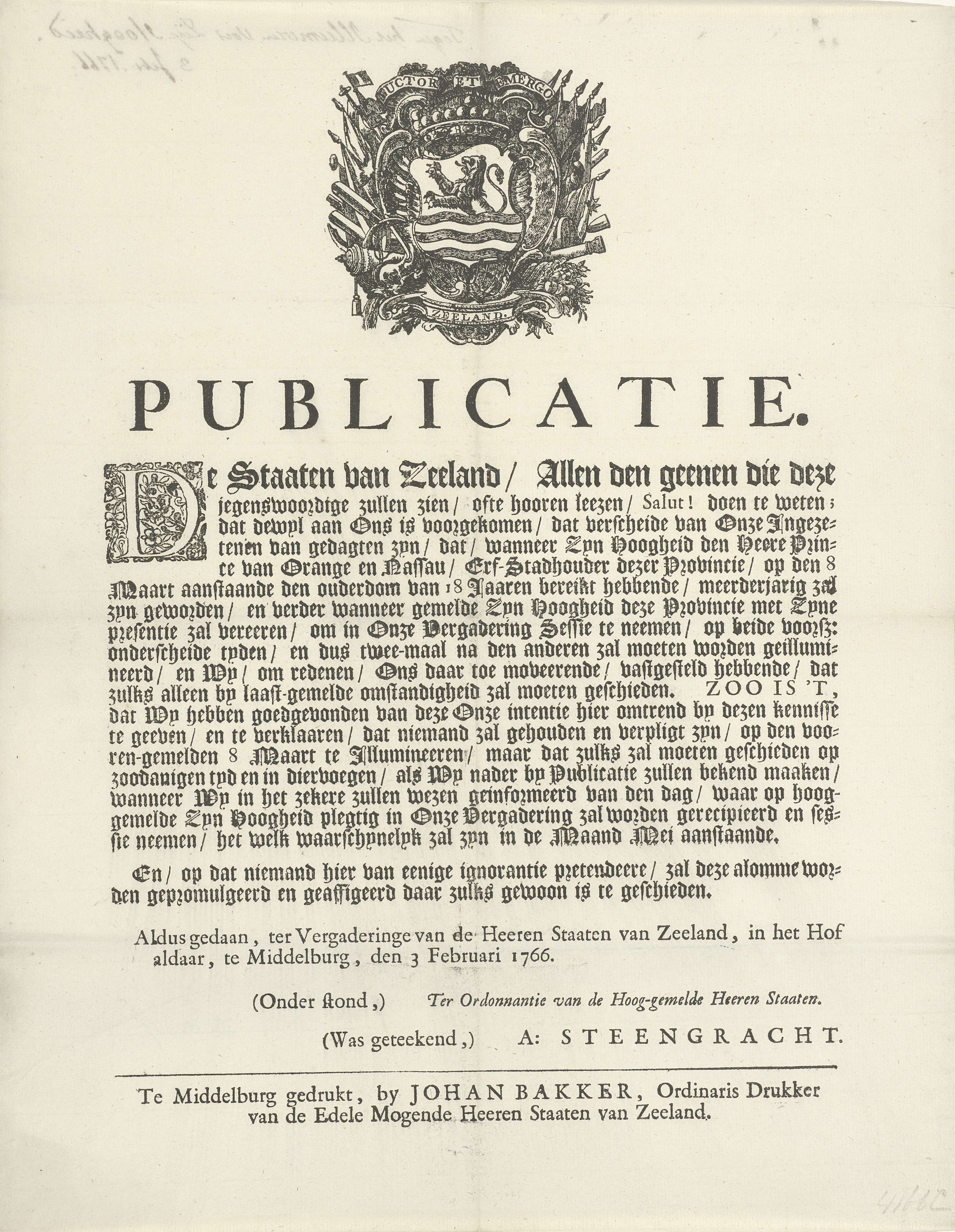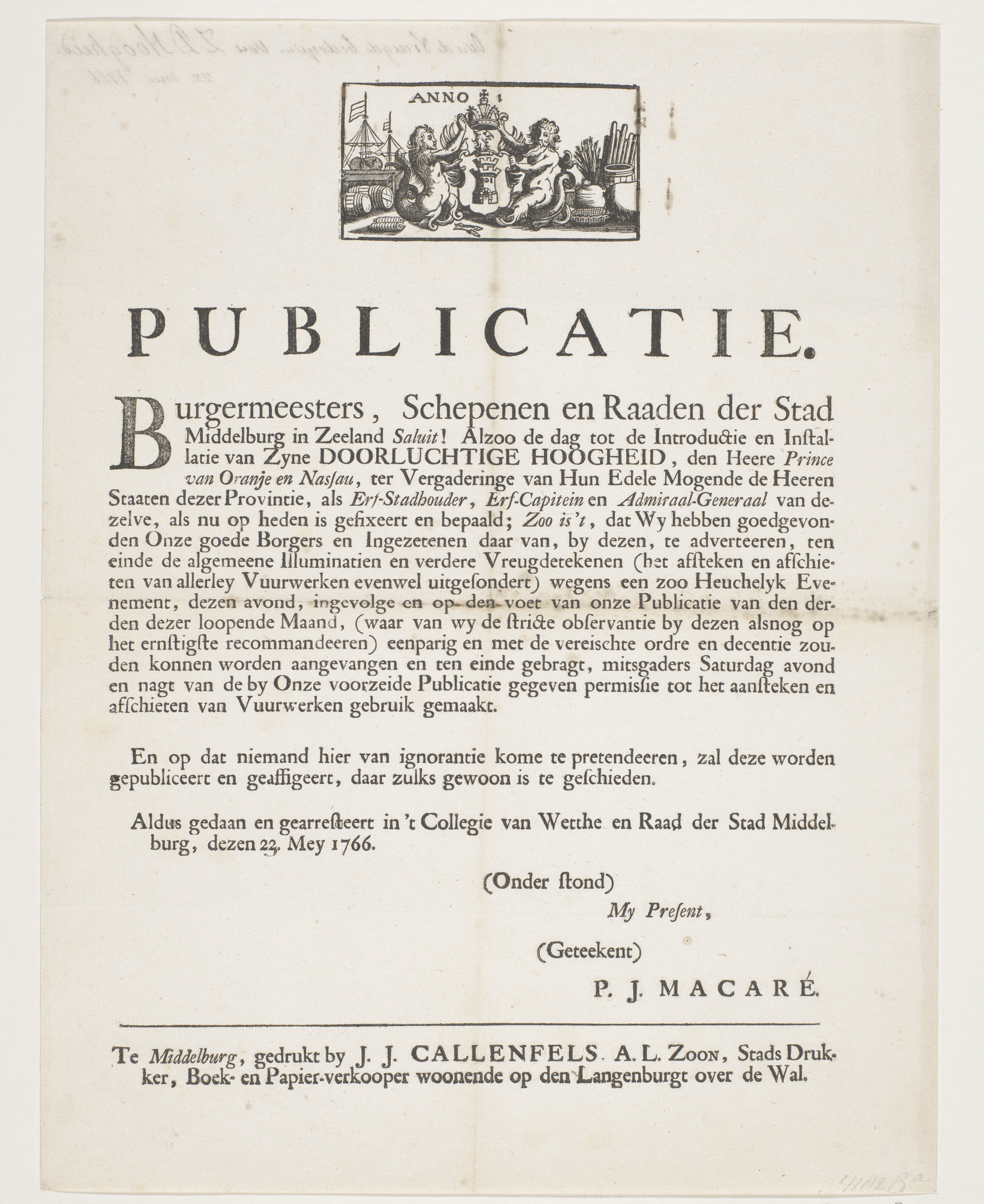Vreugdewijn ter ere van de intrede van Willem V en W...
