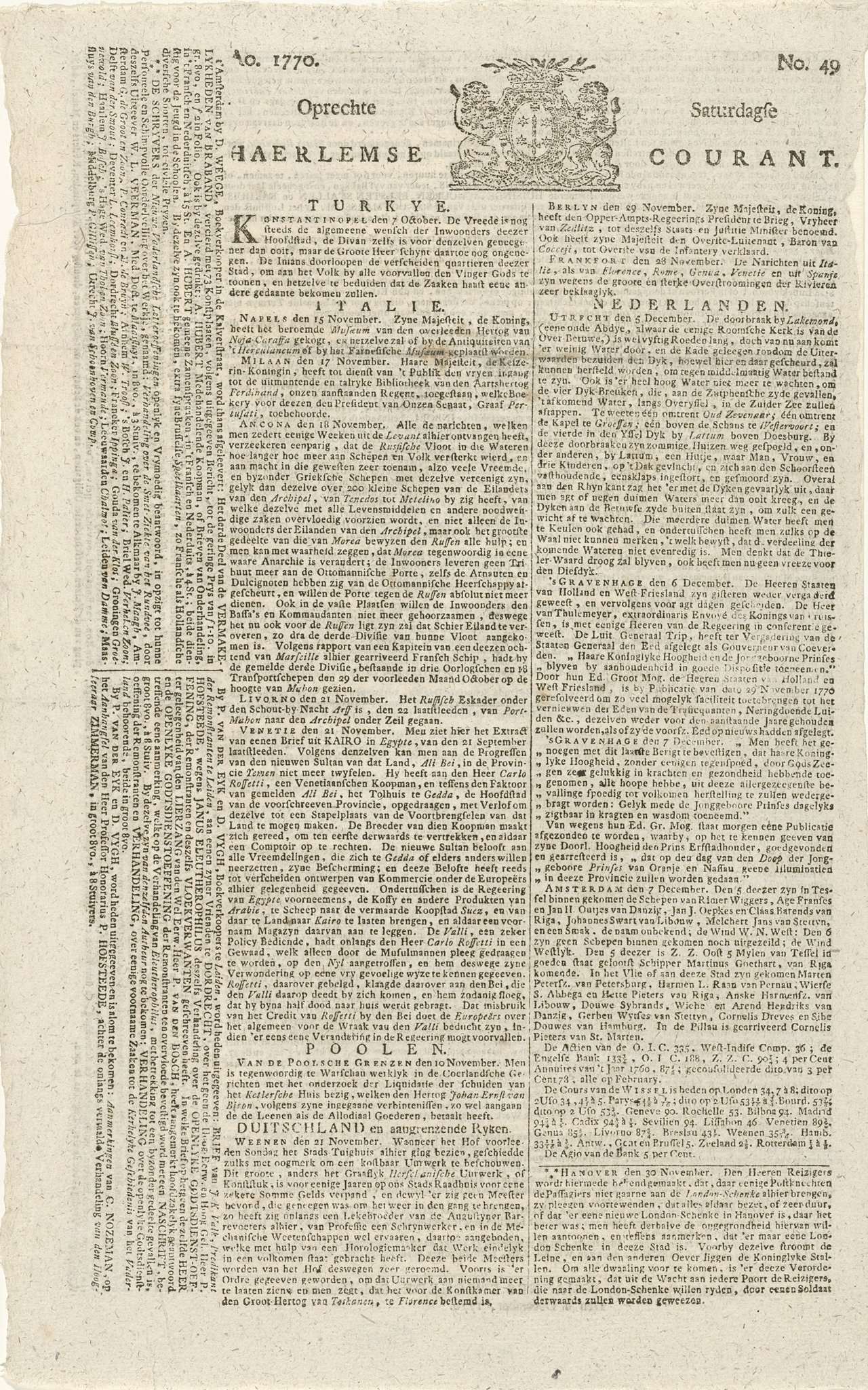 Oprechte Saturdagse Haerlemse Courant van 8 december...