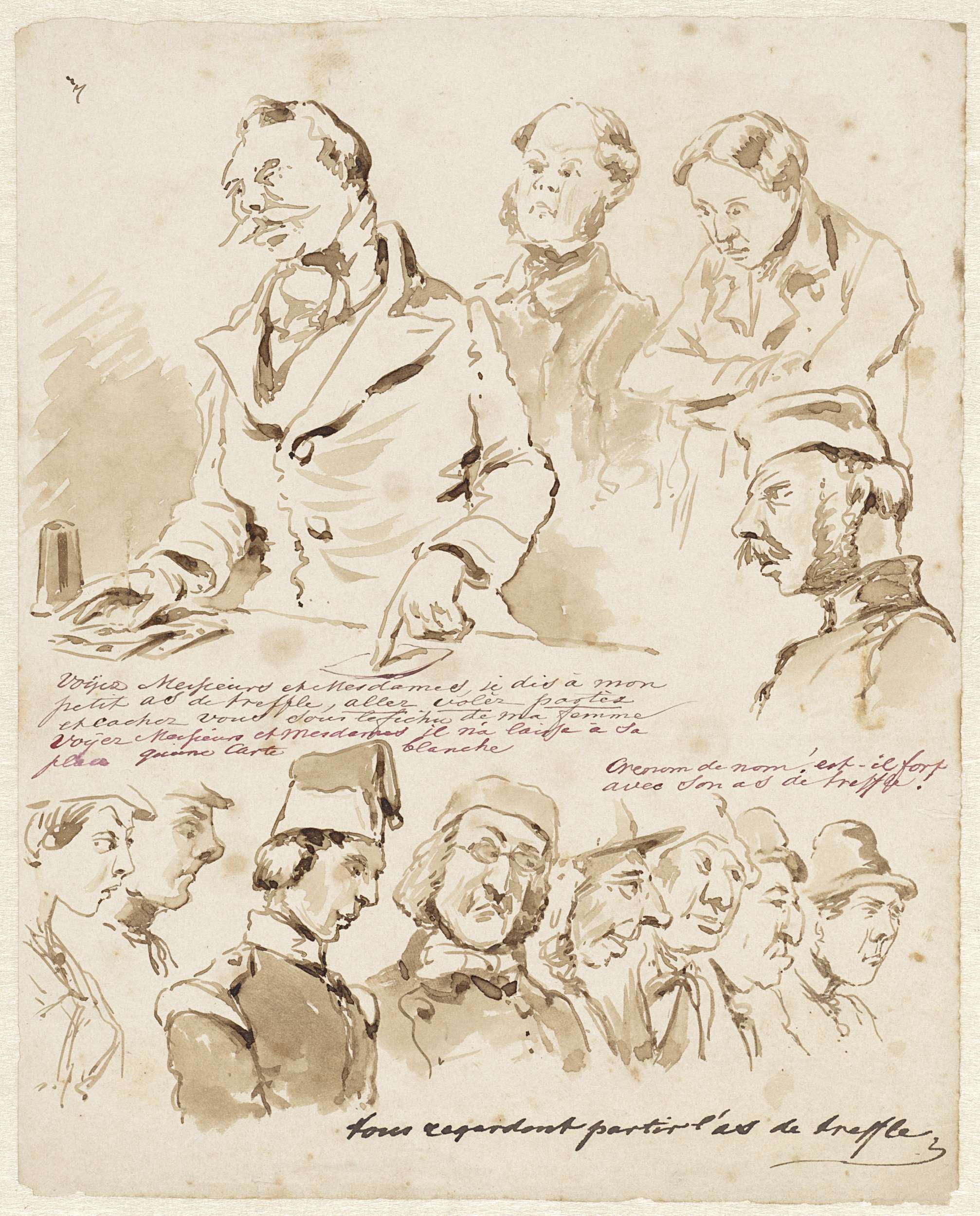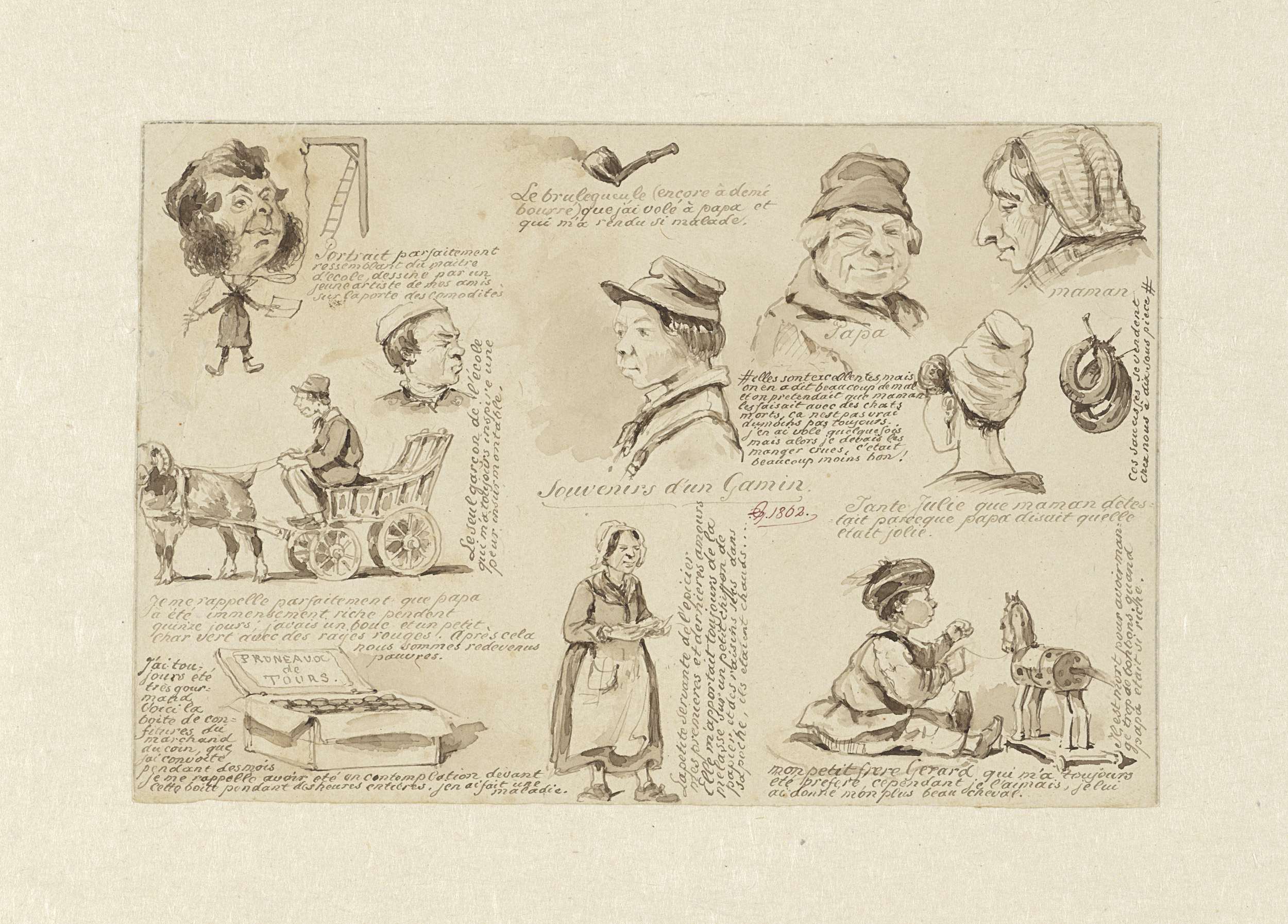 Karikaturale koppen en een echtpaar met zoontje(?)