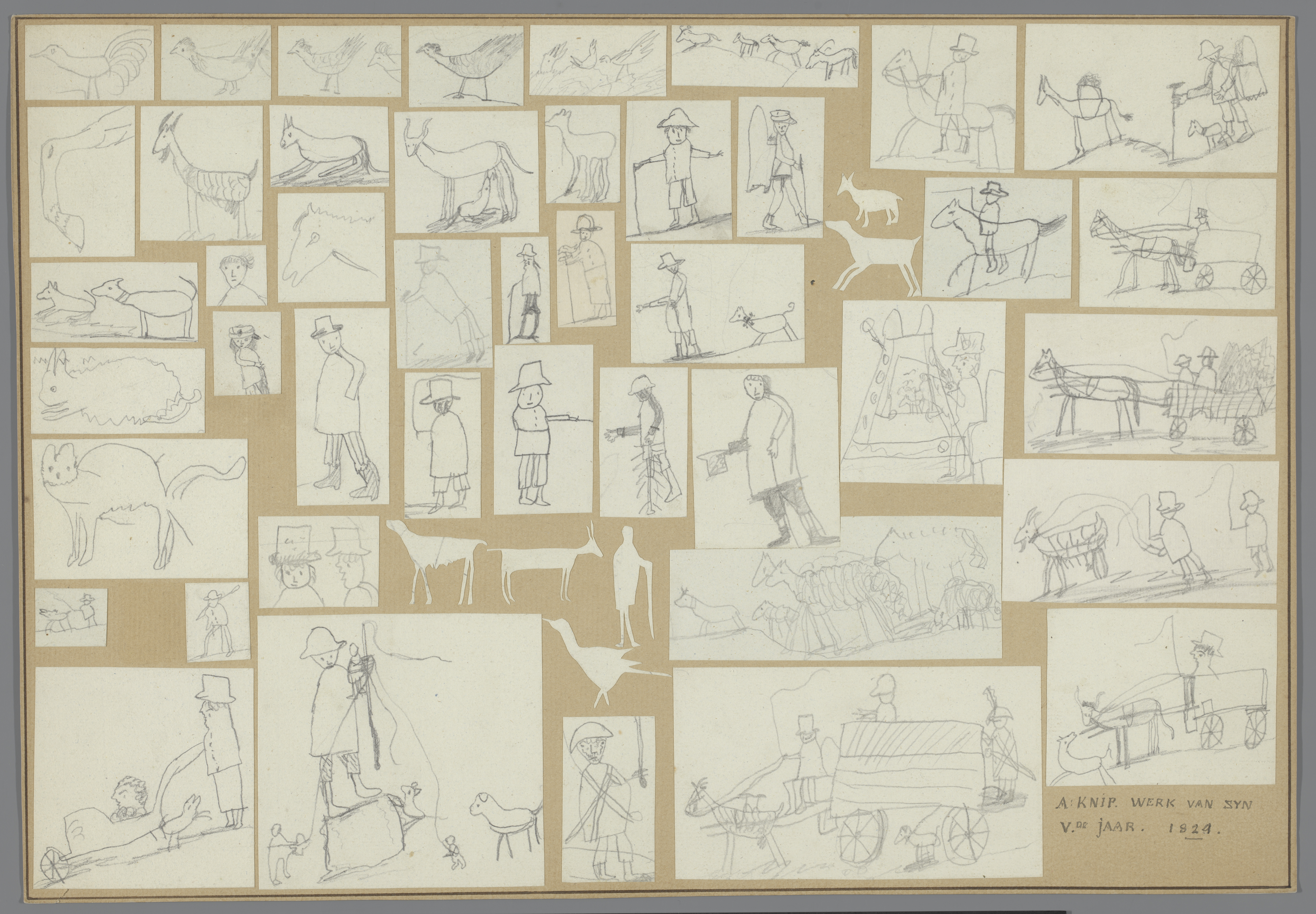 Karton waarop 46 kindertekeningen en 6 knipsels van ...