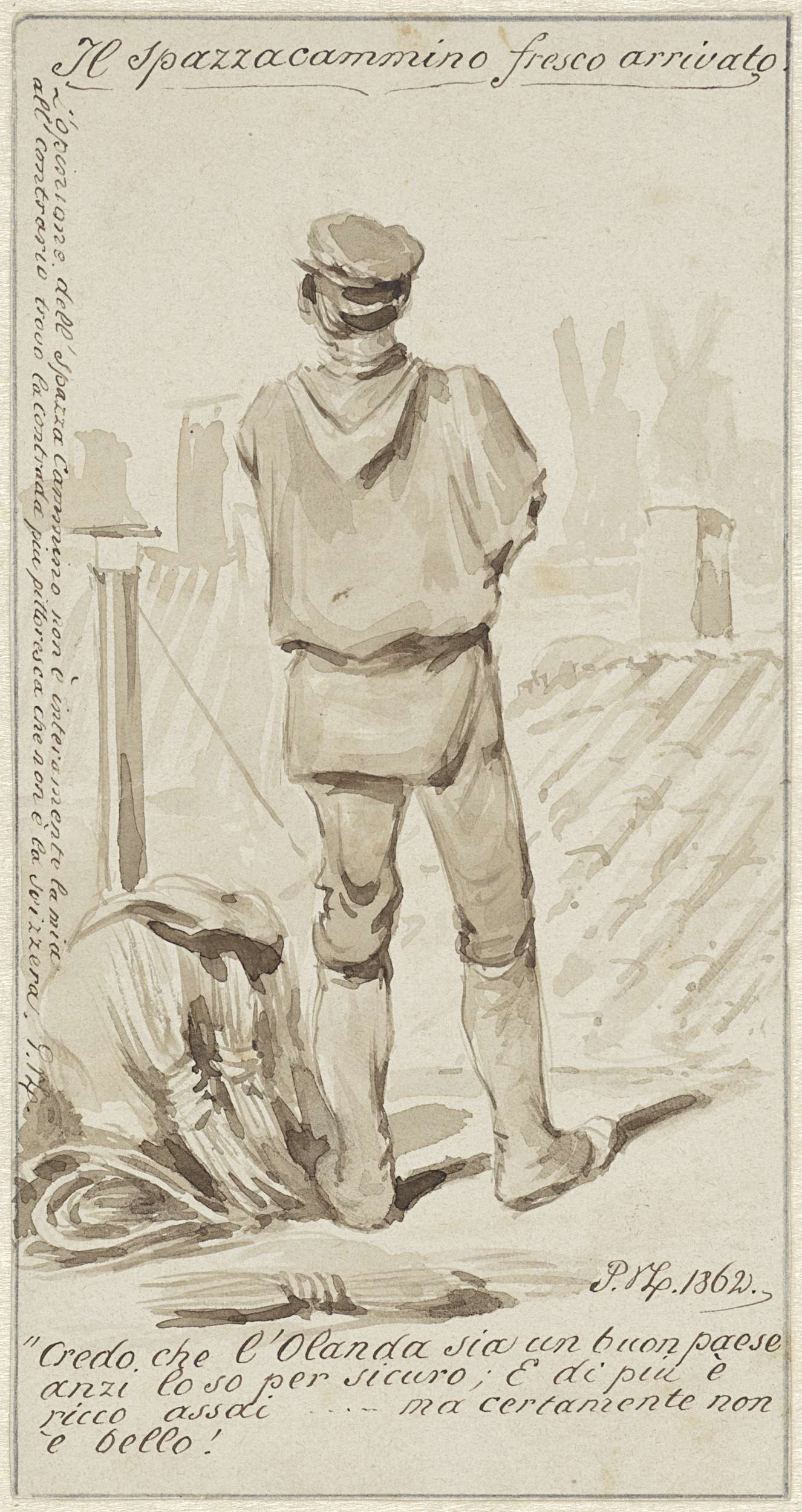 Karikatuur van net in Nederland aangekomen Italiaans...