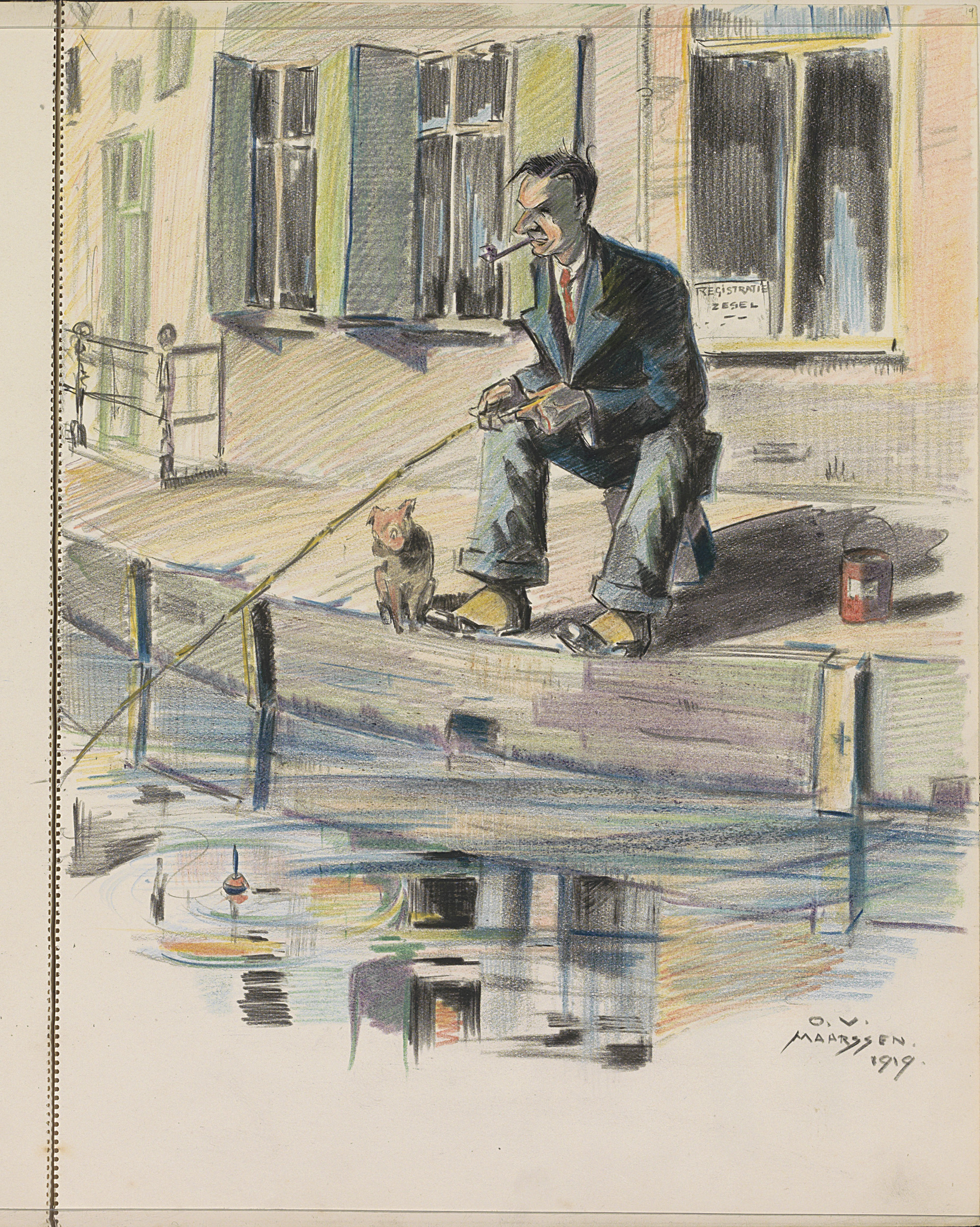 Vissende man aan een gracht te Maarssen