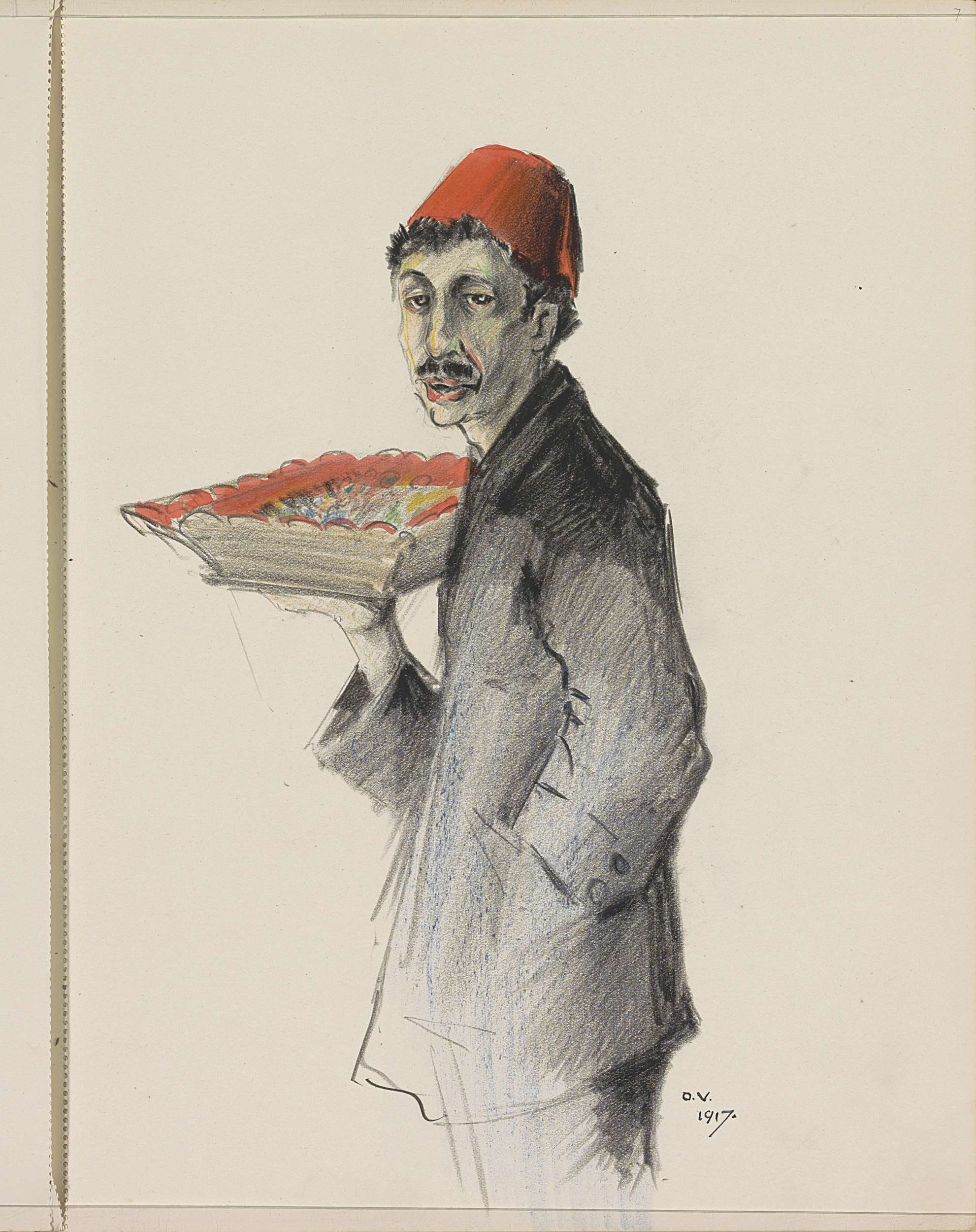 Man met een fez en een dienblad in de hand