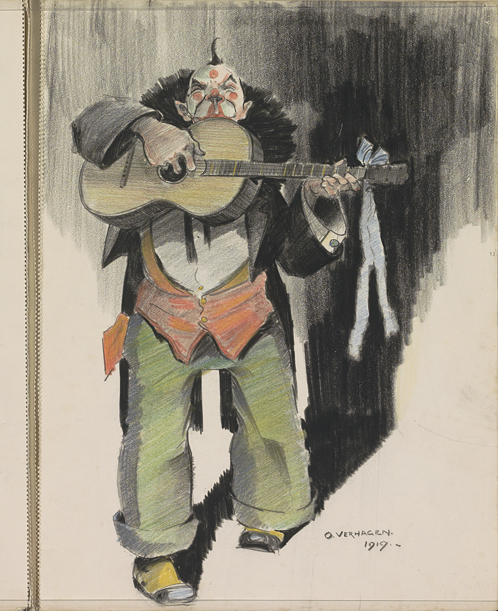 Geschminkte gitaarspelende man
