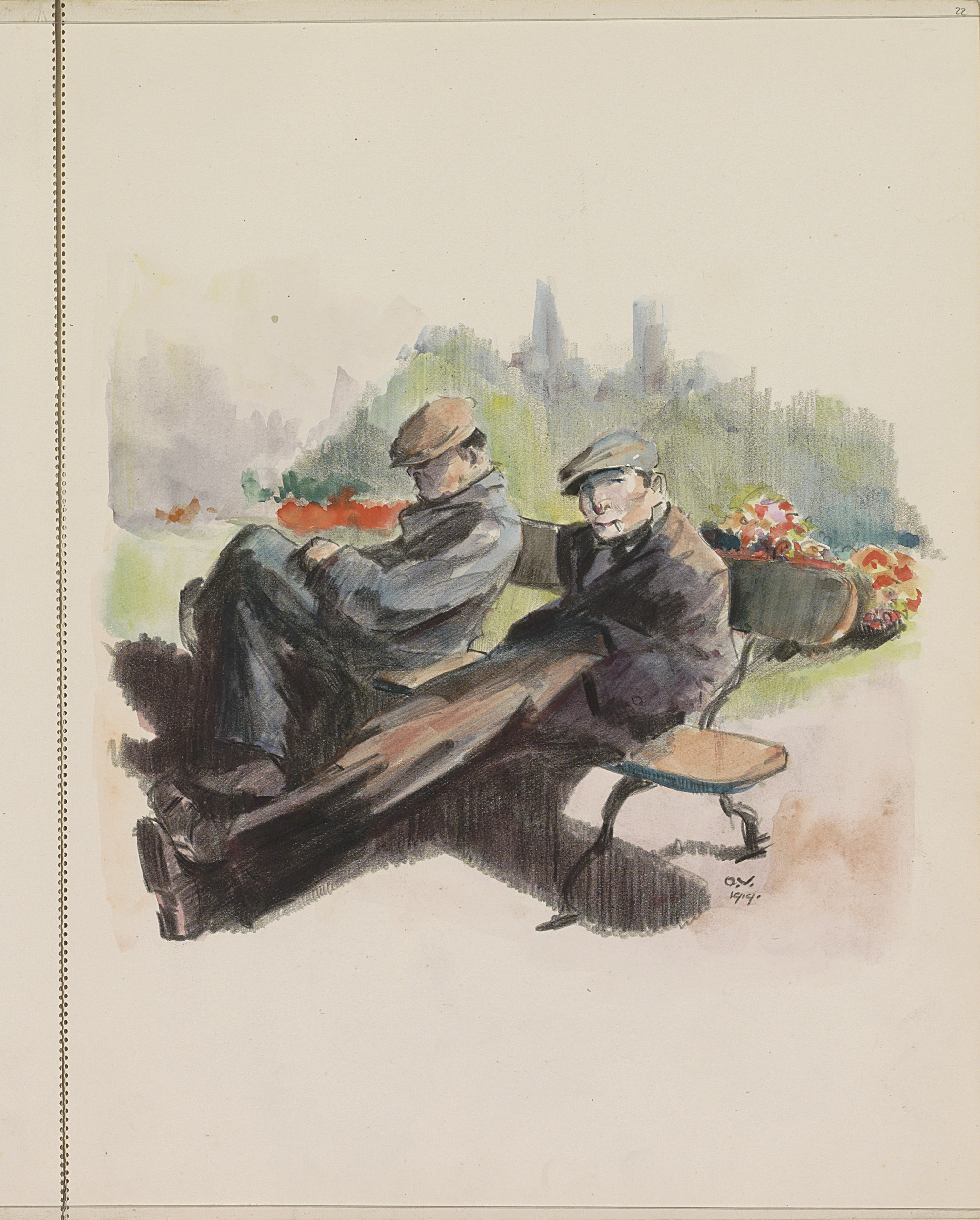 Twee mannen zittend op een bank in een park
