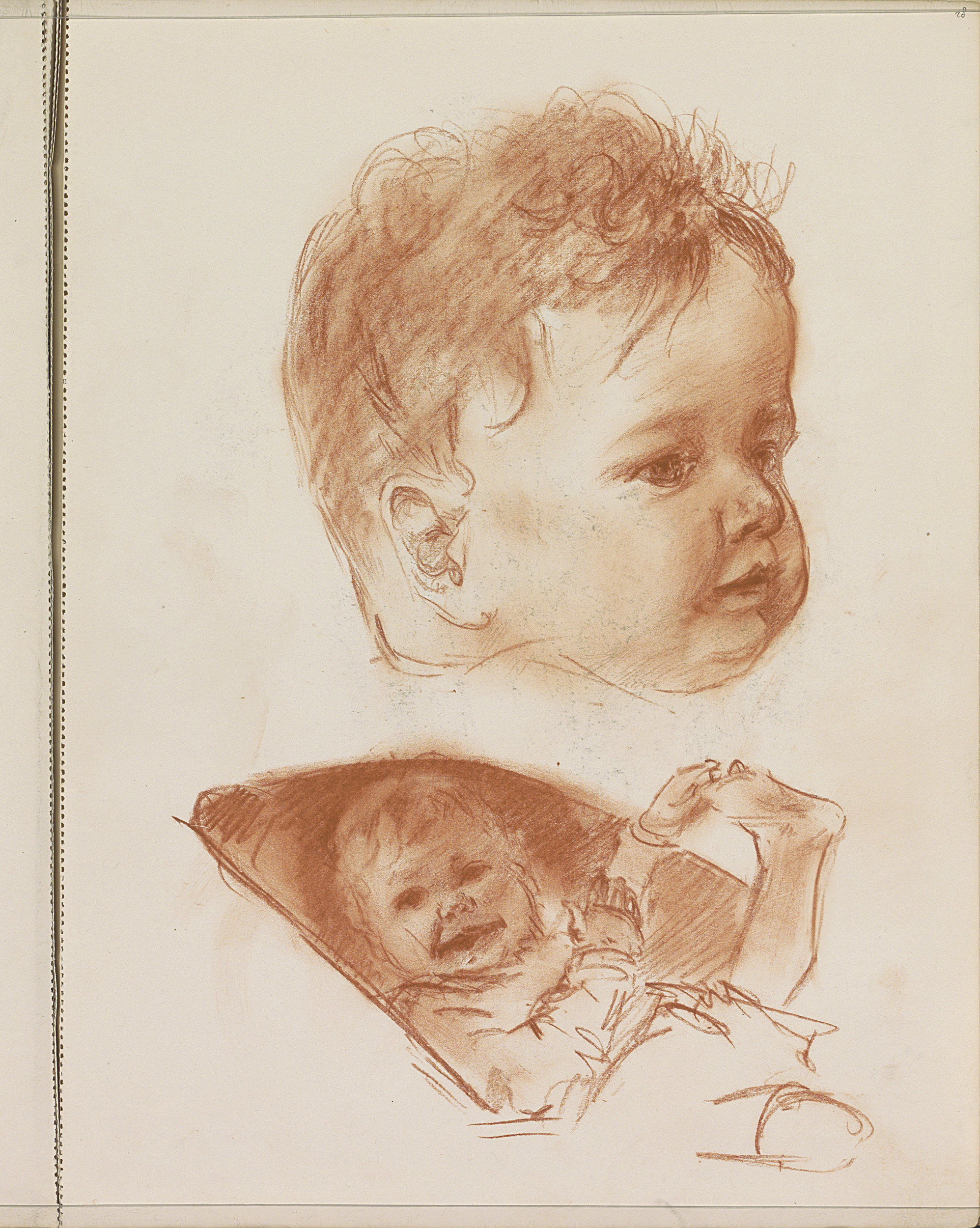Lachend kind in een wieg en een kop van een kind