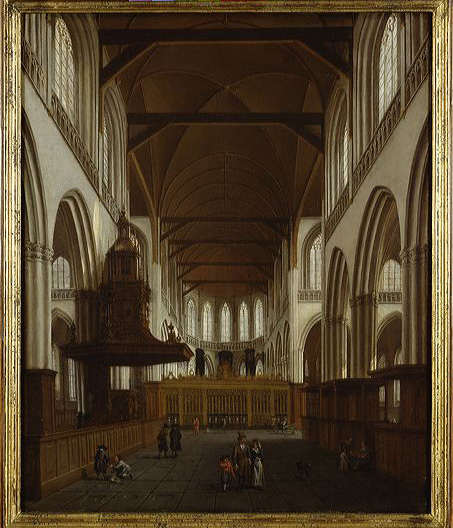 Het interieur van de Nieuwe Kerk naar het oosten