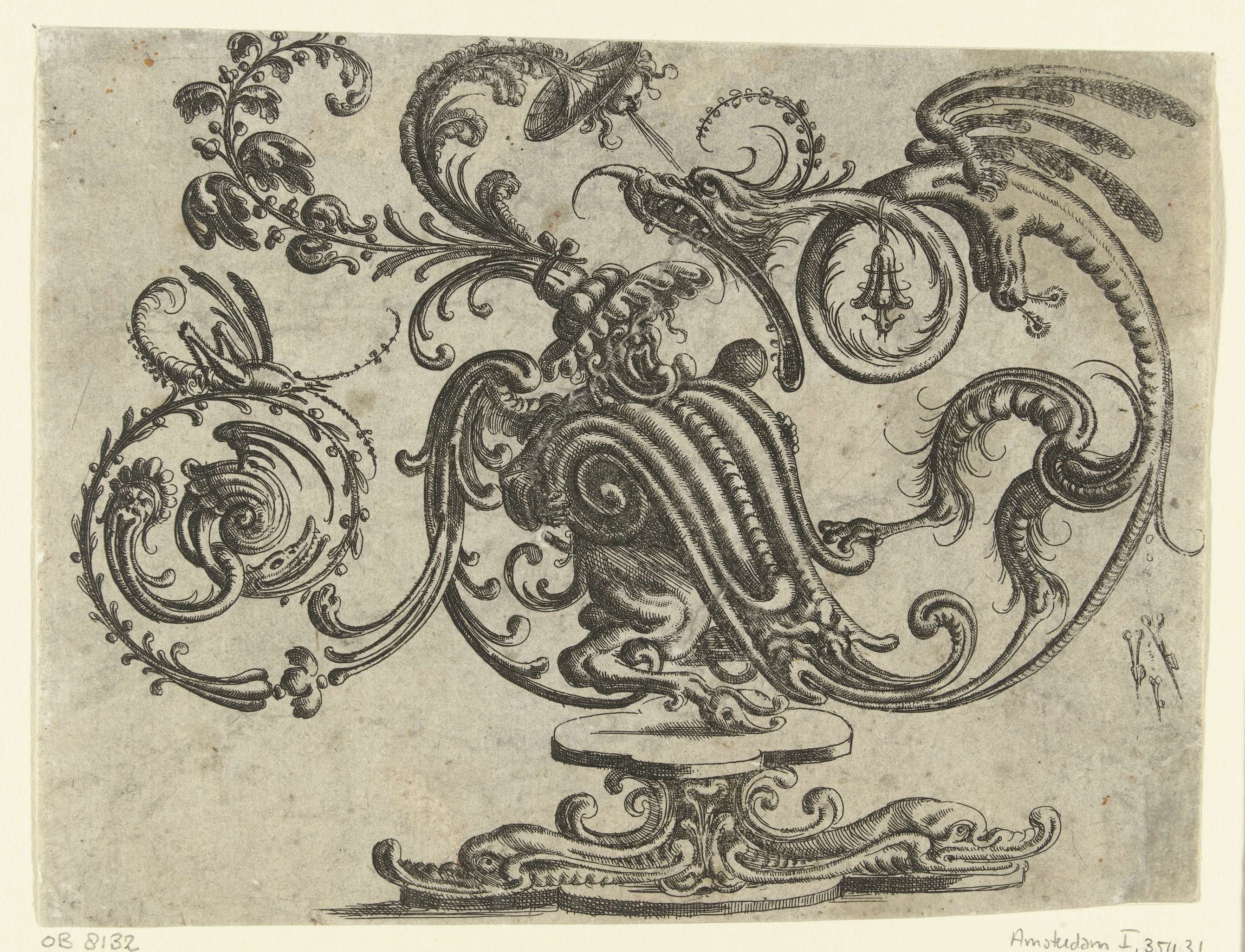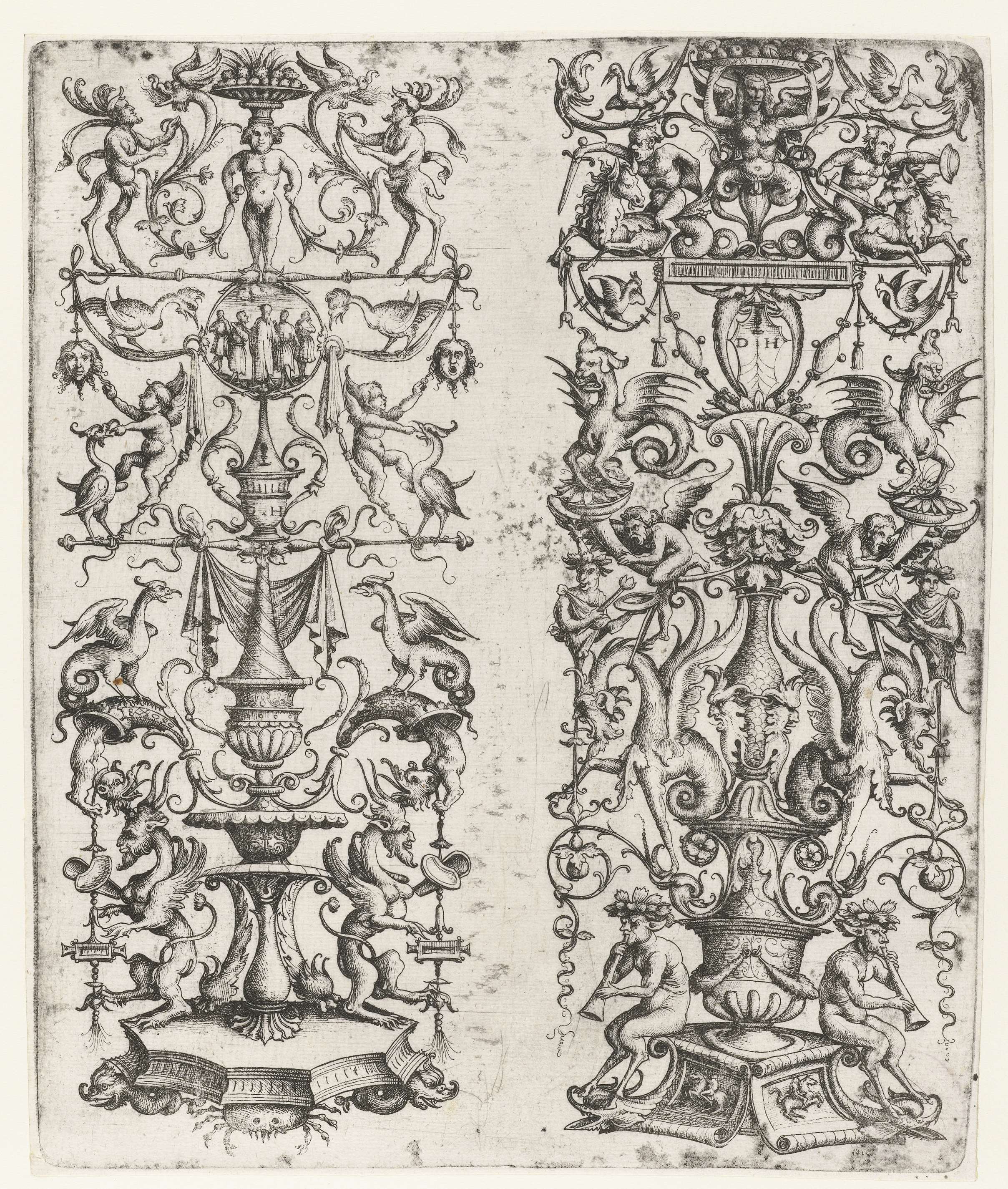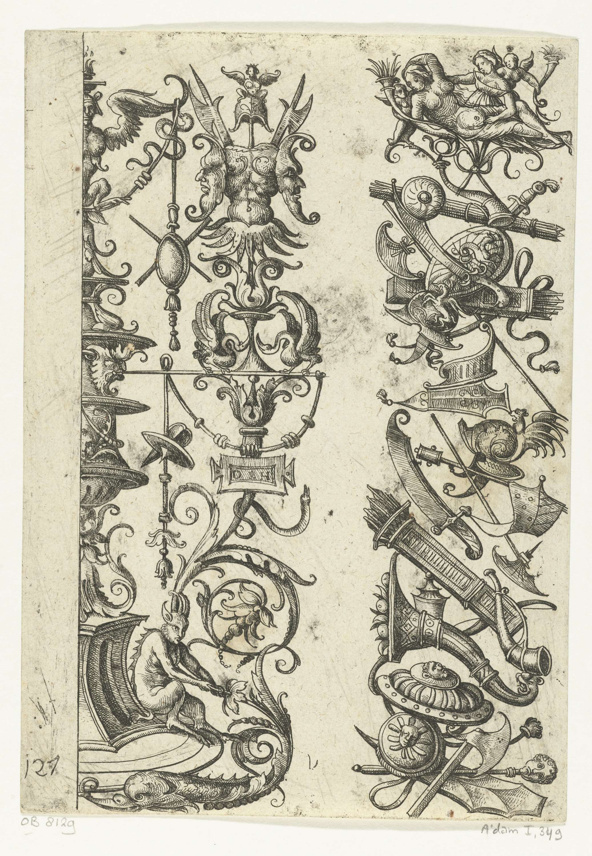 Vlakdecoraties, links de helft van een kandelaber, r...