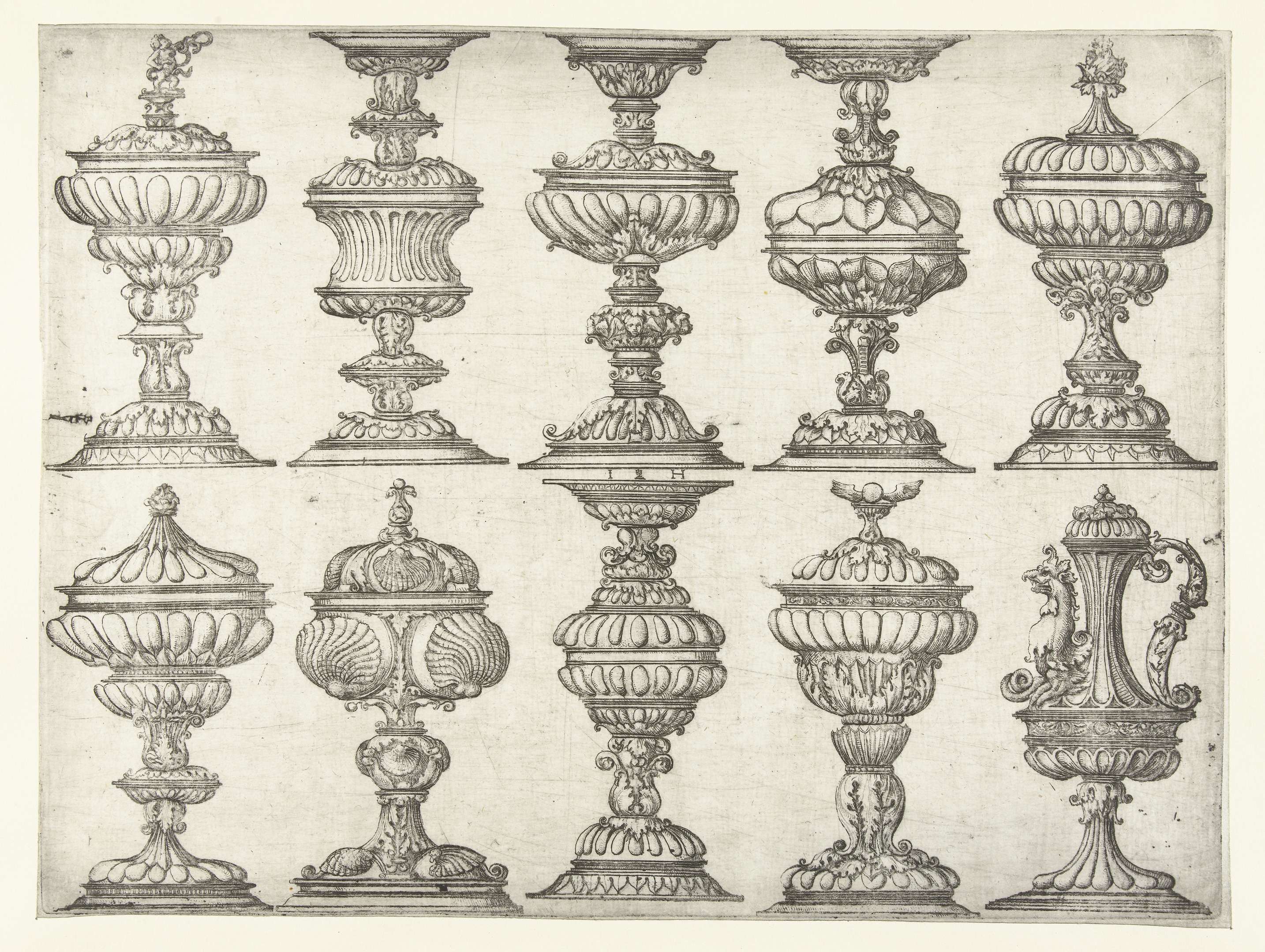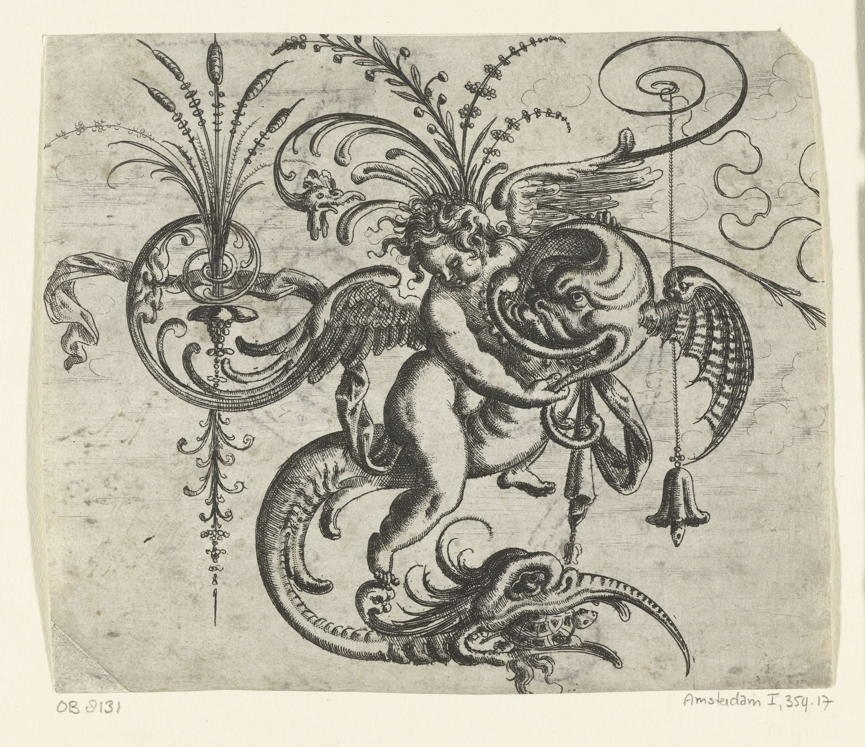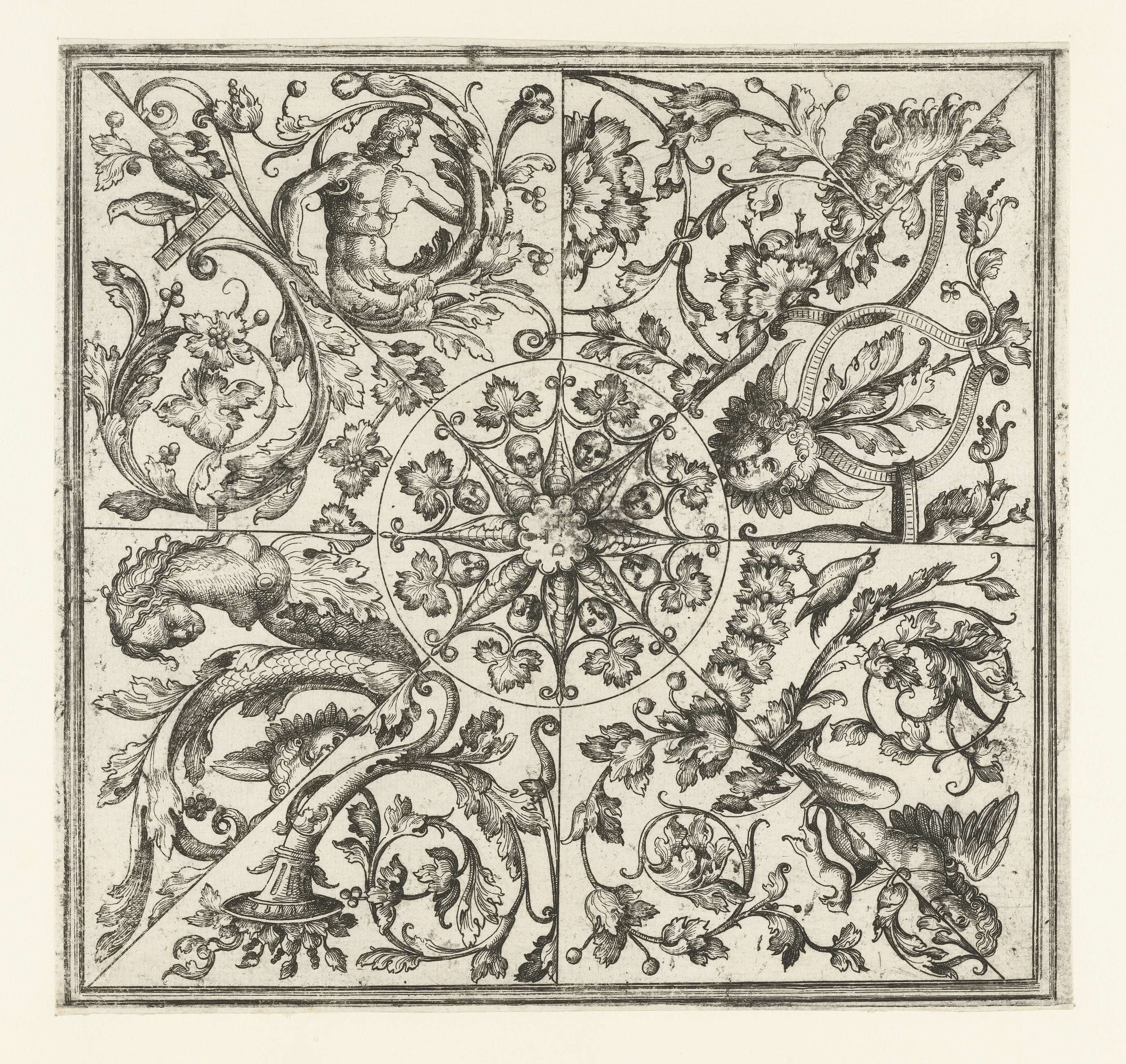 Vlakdecoraties, links de helft van een kandelaber, r...