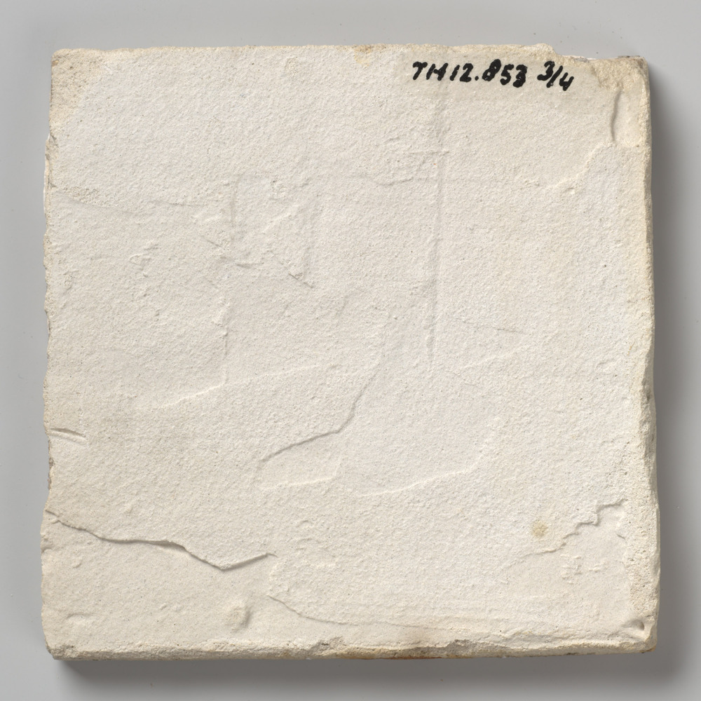 Tegel van aardewerk met tinglazuur voorstellende: or...