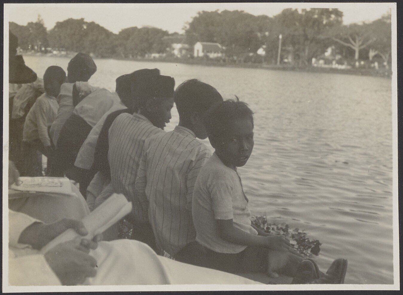 Javaanse kinderen zitten langs de rivier