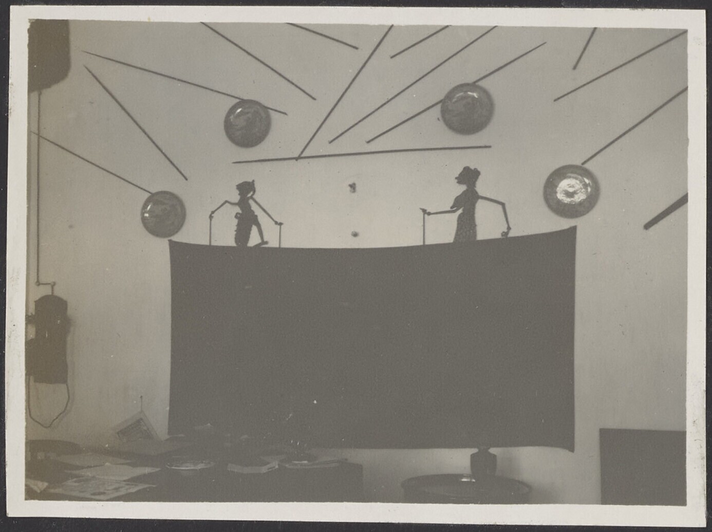 Opstelling voor een Javaanse poppenvoorstelling in huis