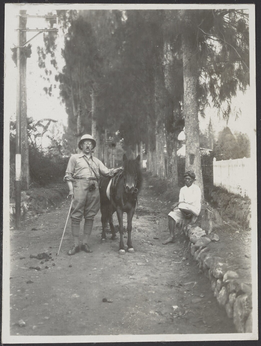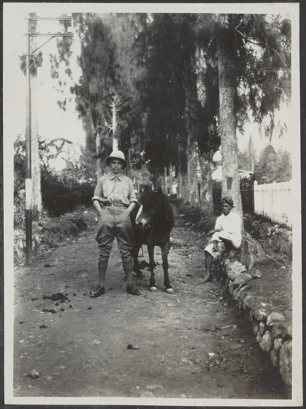 Portret van een Europese man met paard en een Javaan...