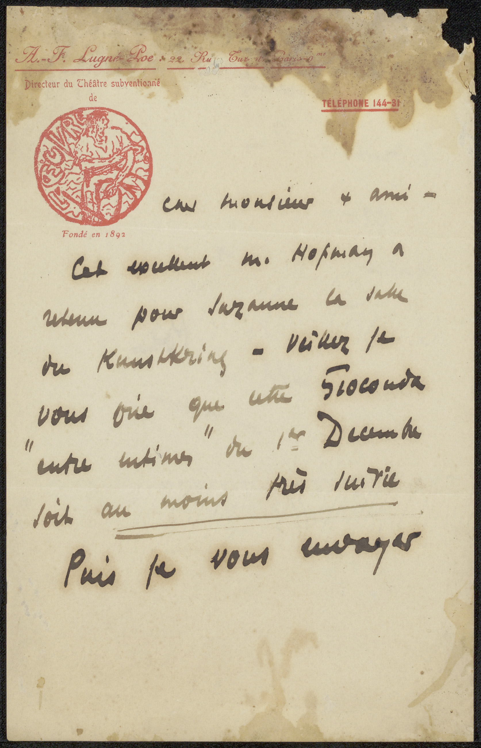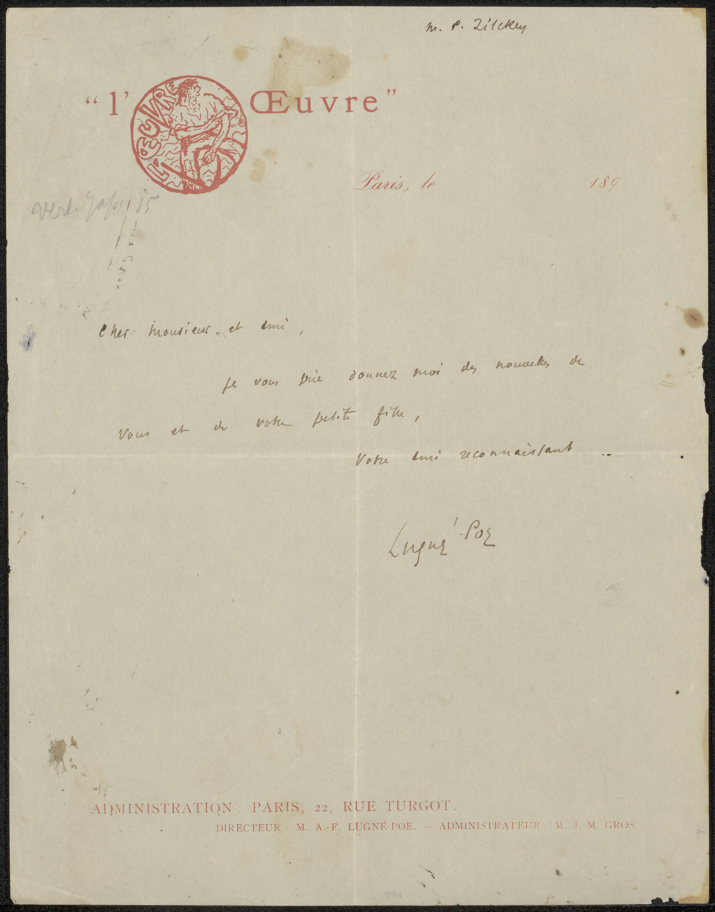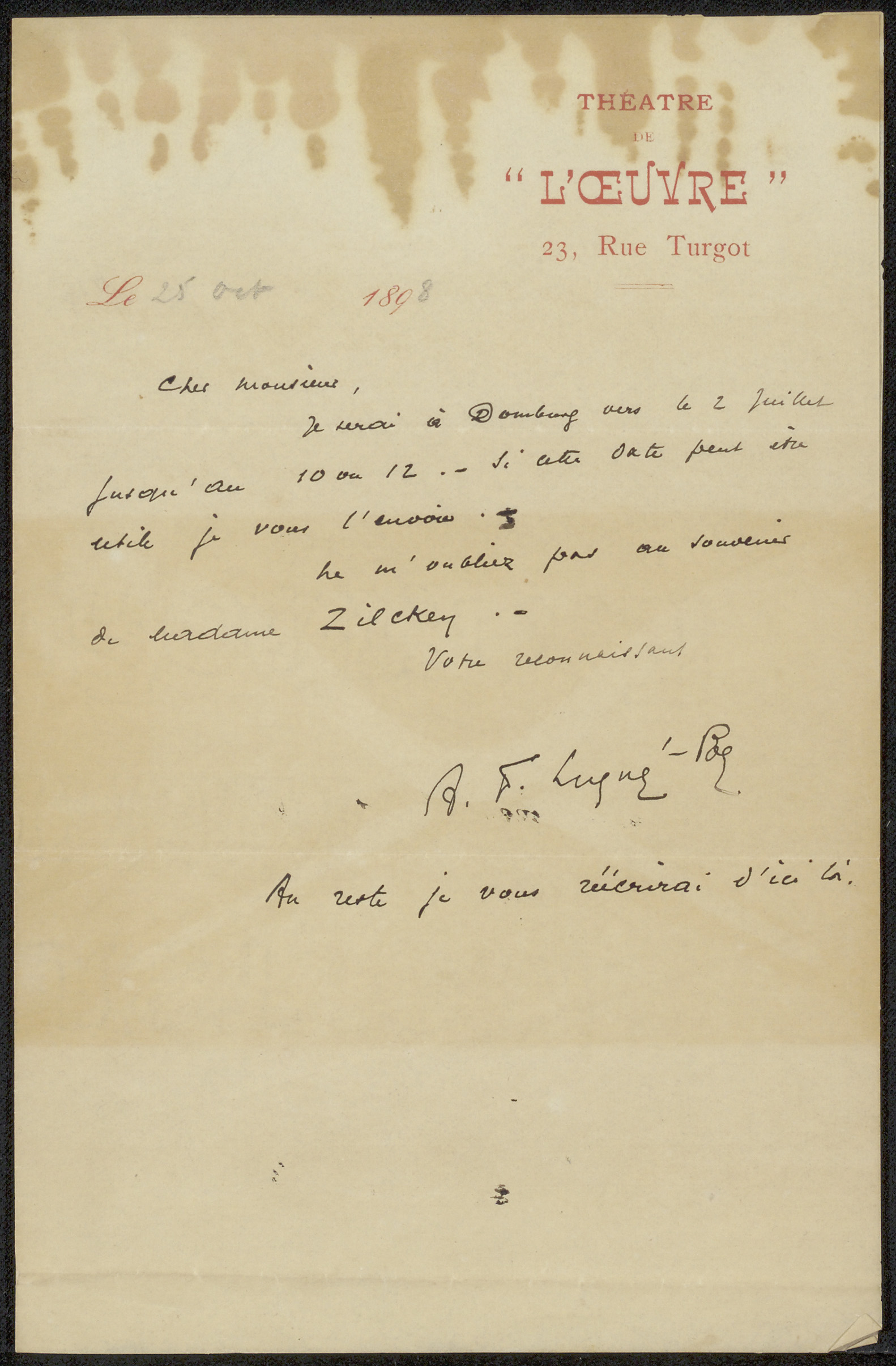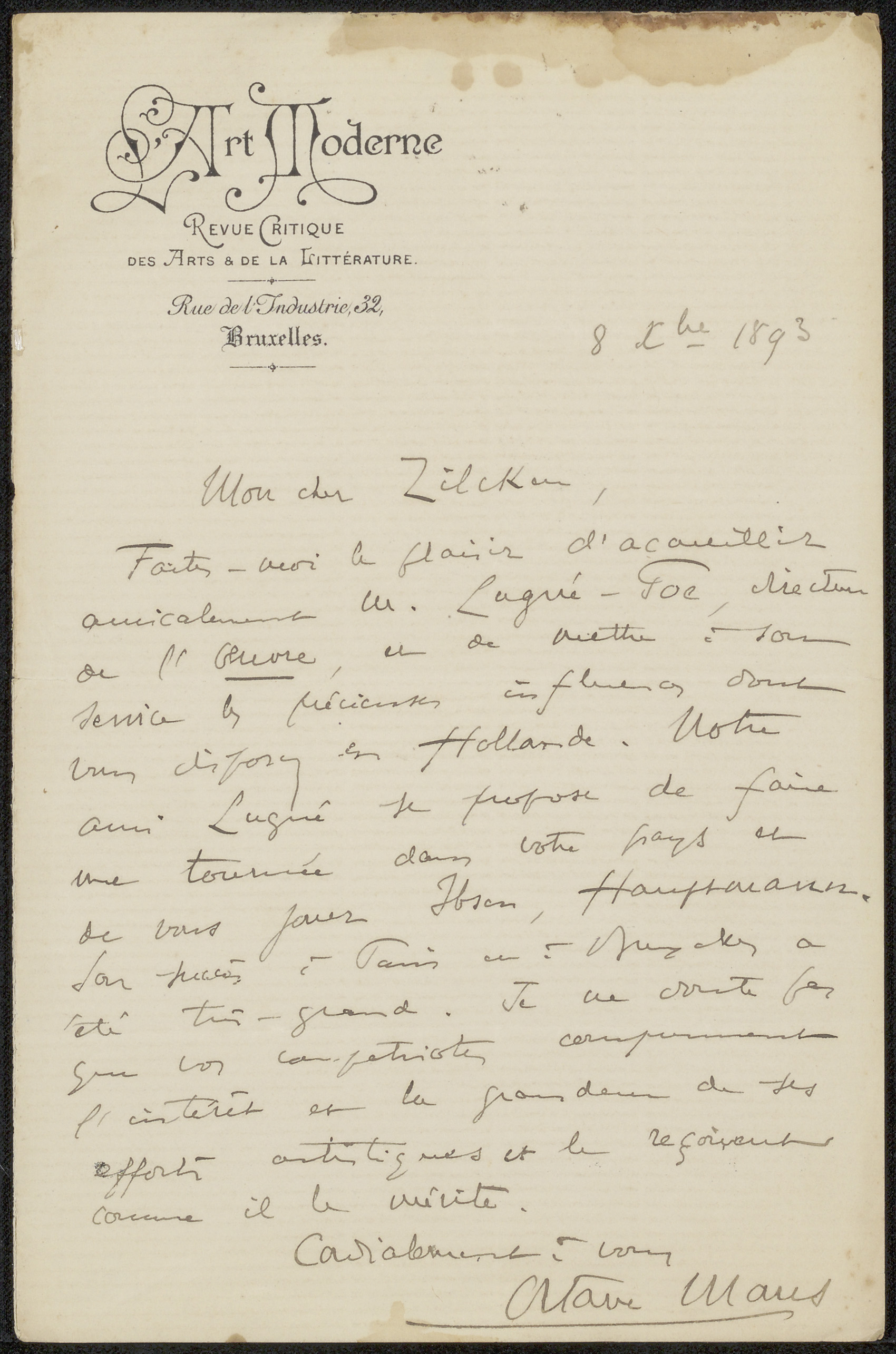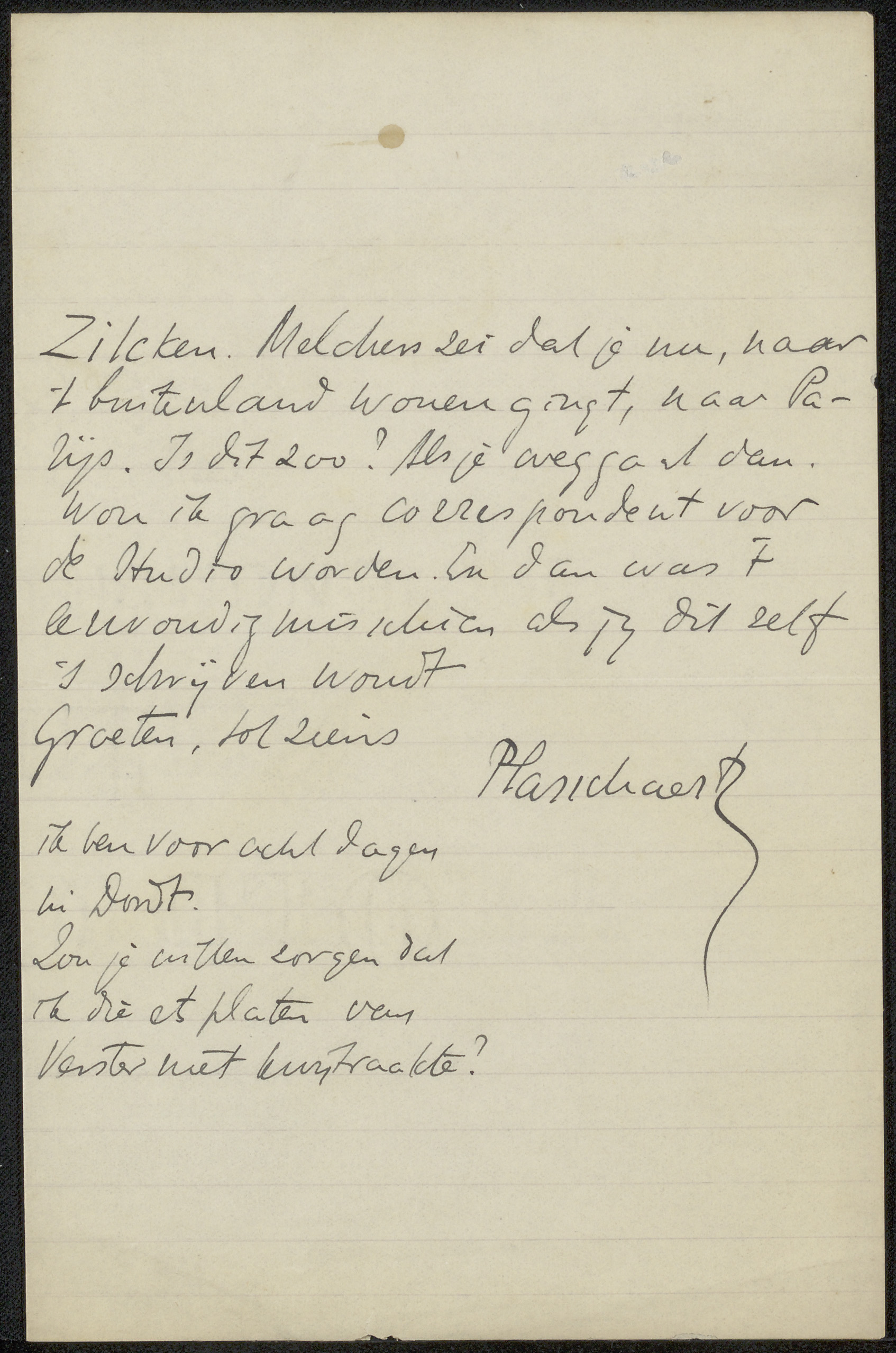 Brief aan Philip Zilcken