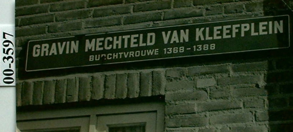 Straatnaambord Gravin Mechteld van Kleefplein (Thans...