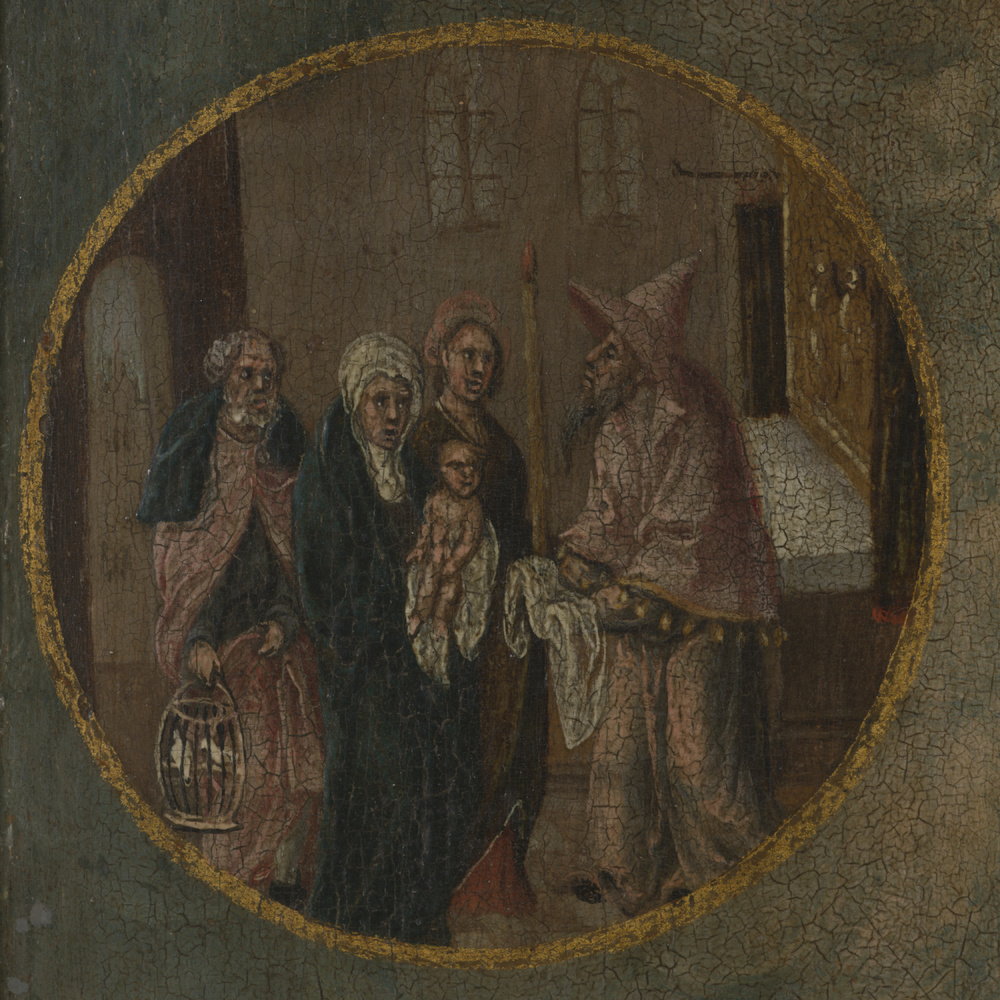Paneelschildering "Madonna der zeven smarten" op hou...