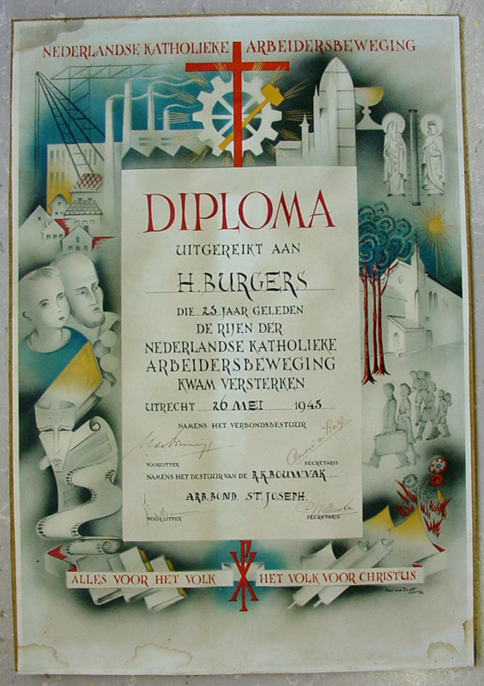 Diploma 25-jarig lidmaatschap van de NKAB, uitgereik...