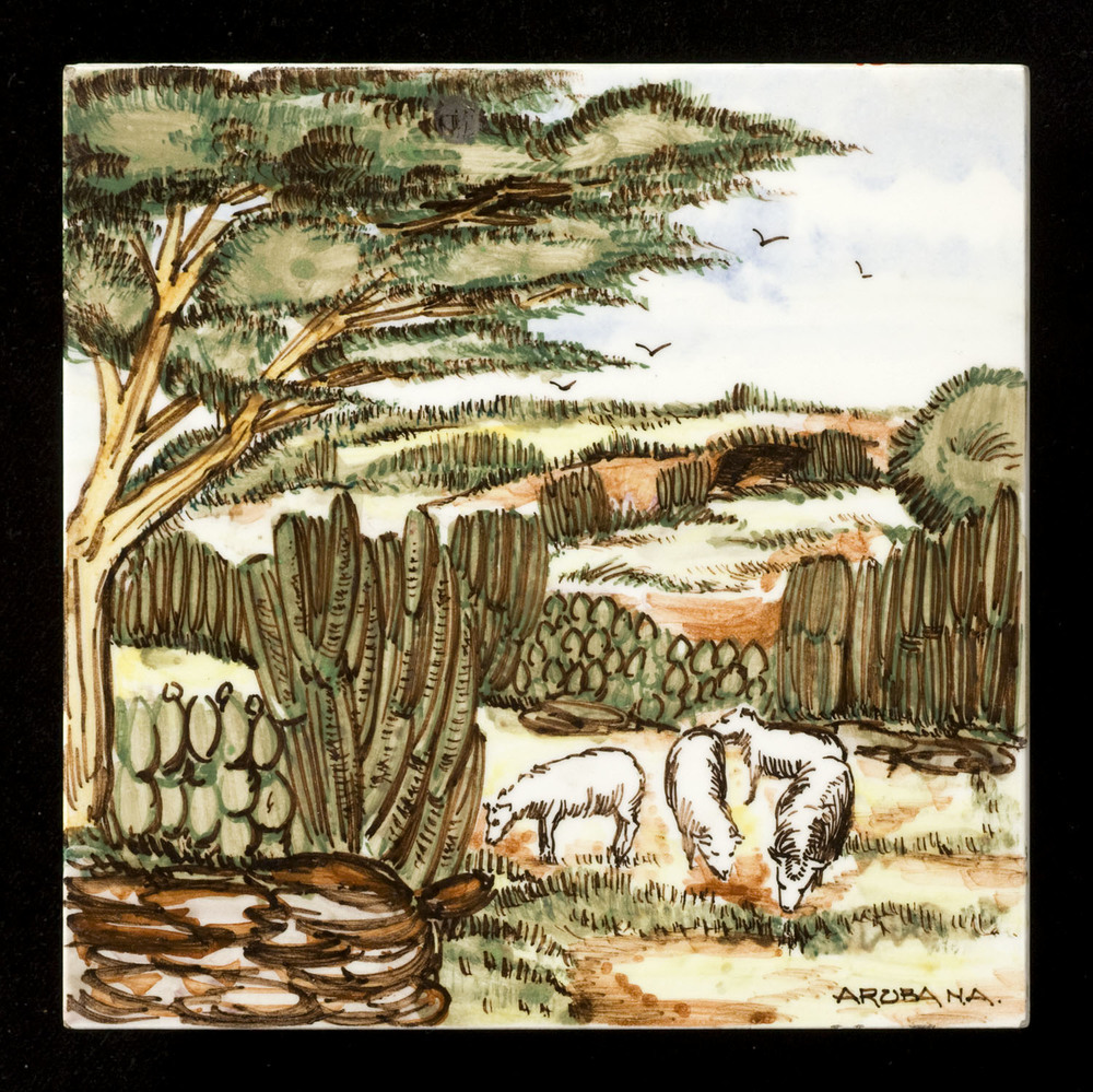 Tegel van keramiek in onderglazuur, voorstellende: l...