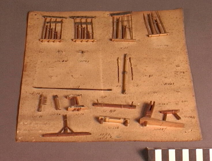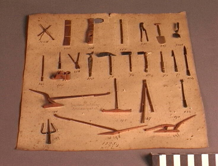 Modellen van zesentwintig landbouwwerktuigen en timm...