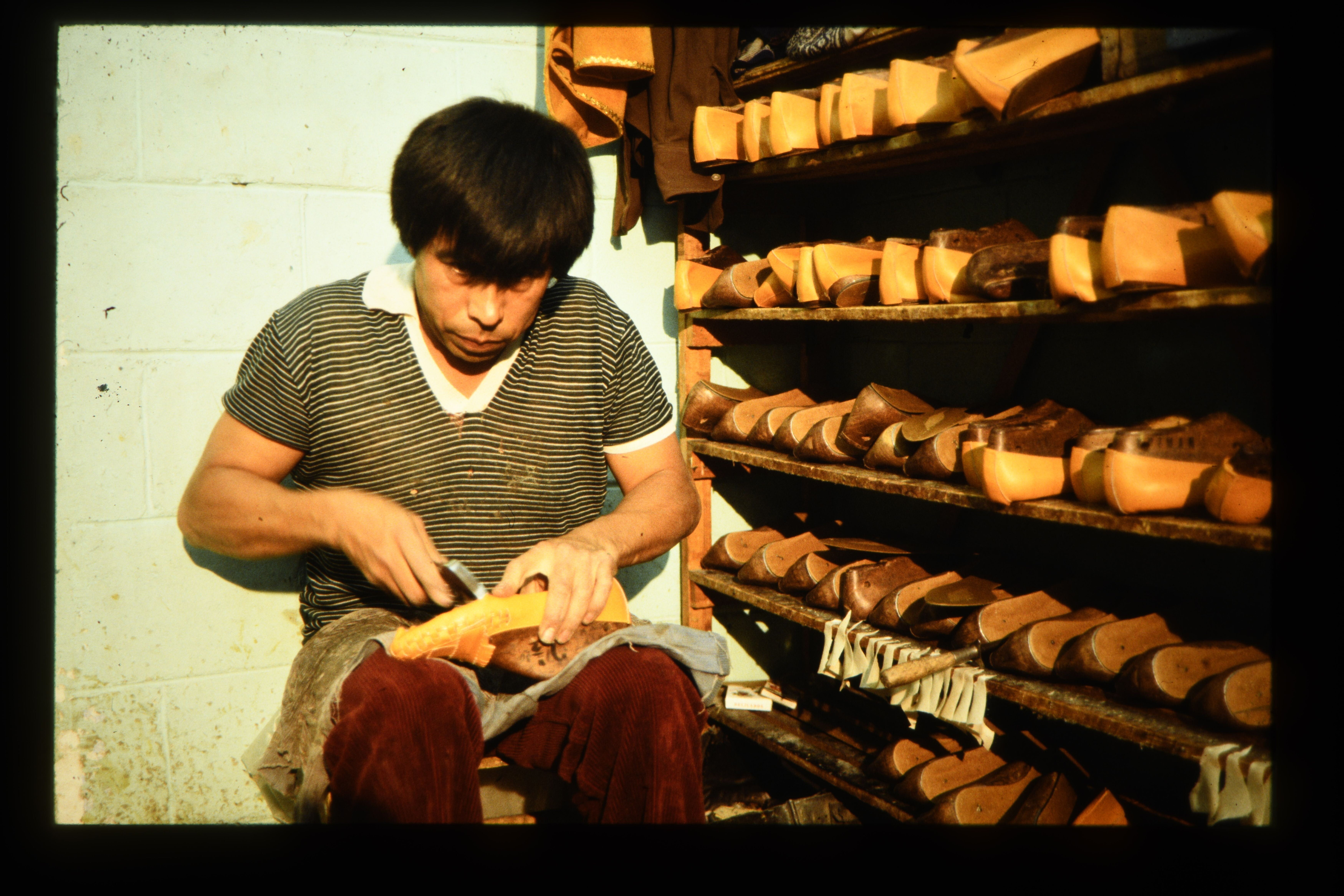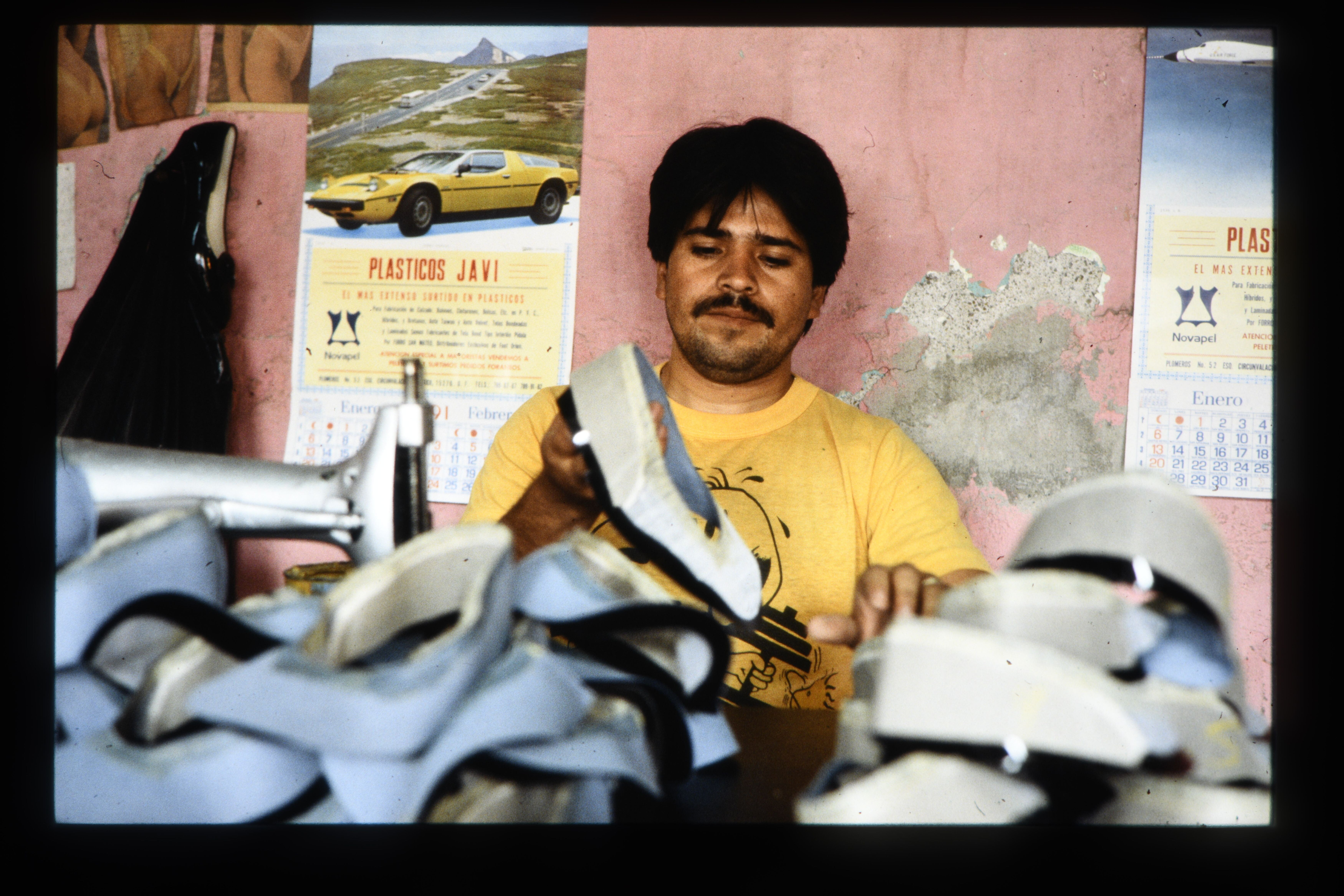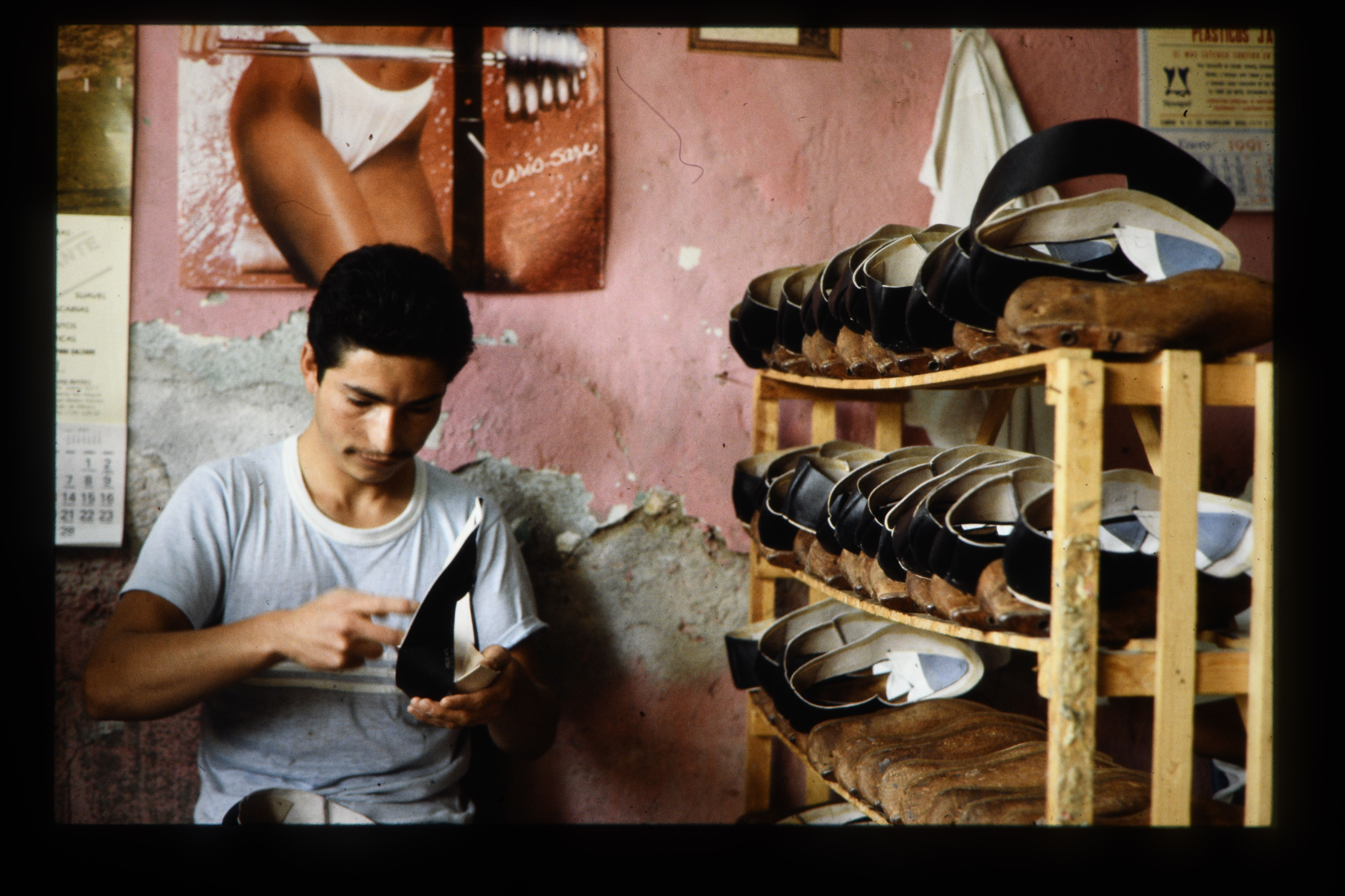 'Man maakt schoenen. Tepito. Mexico-Stad. '