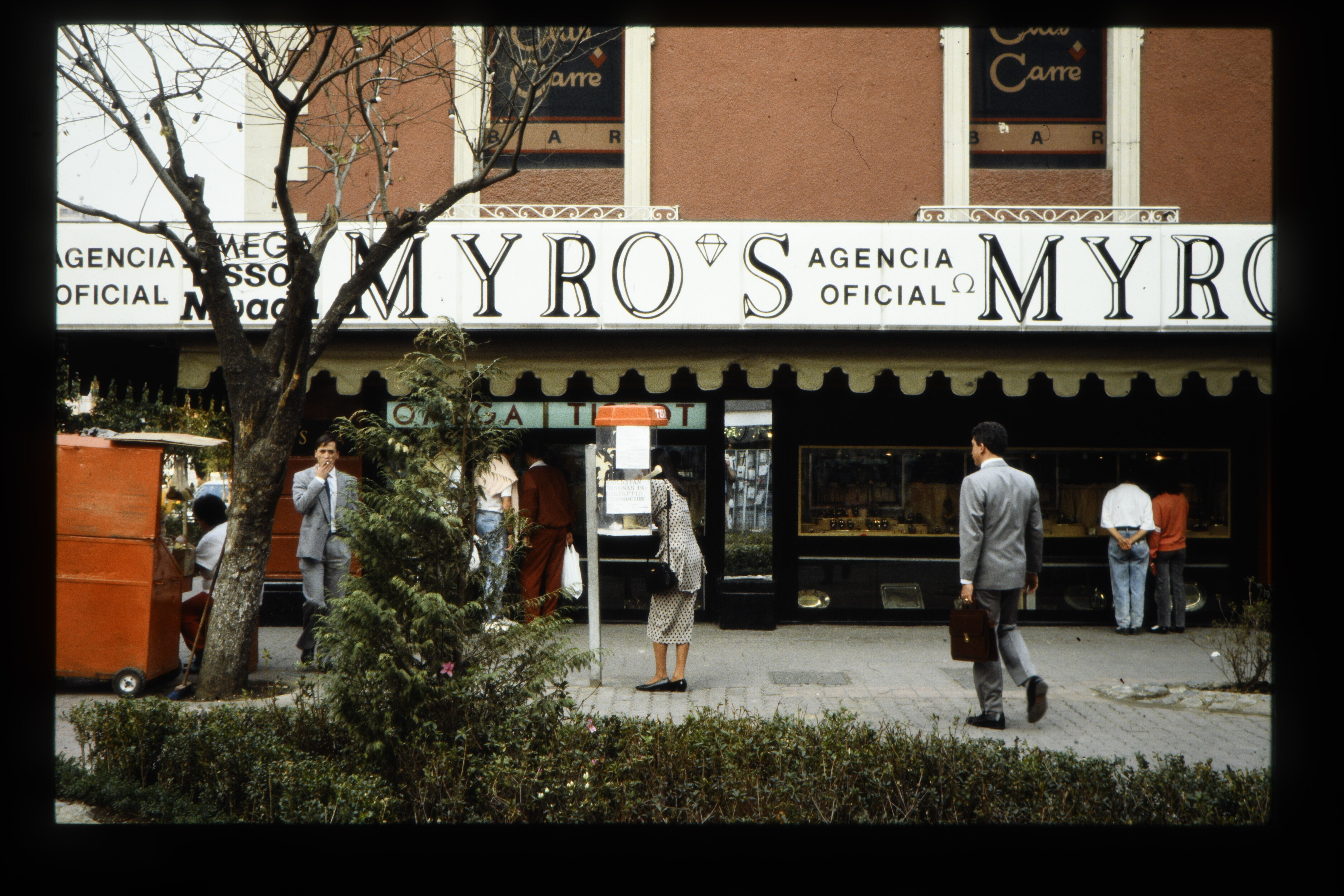 'Man bij kiosk. Zona Rosa. Mexico-Stad. '