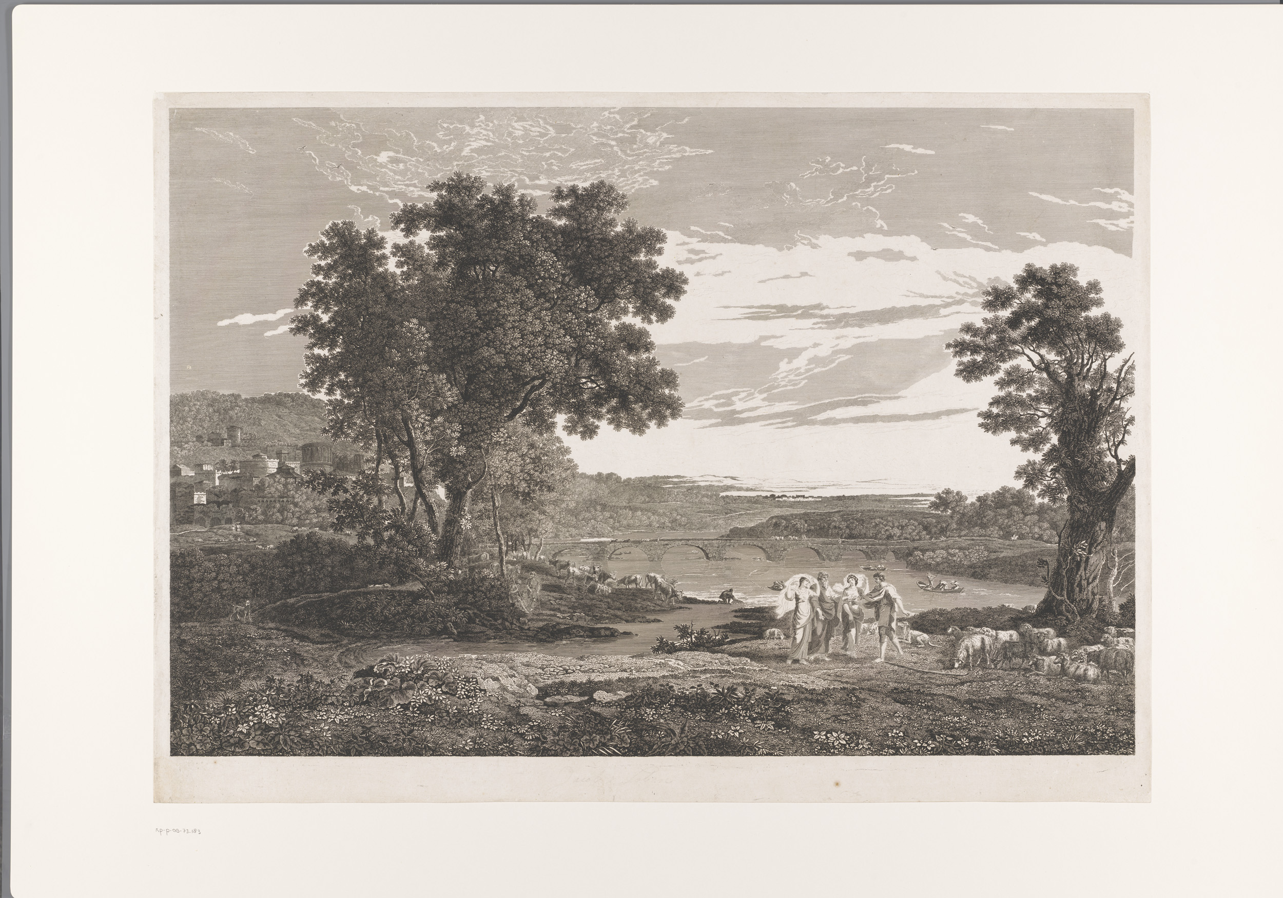 Landschap met herders en vrouw op muilezel aan de oe...
