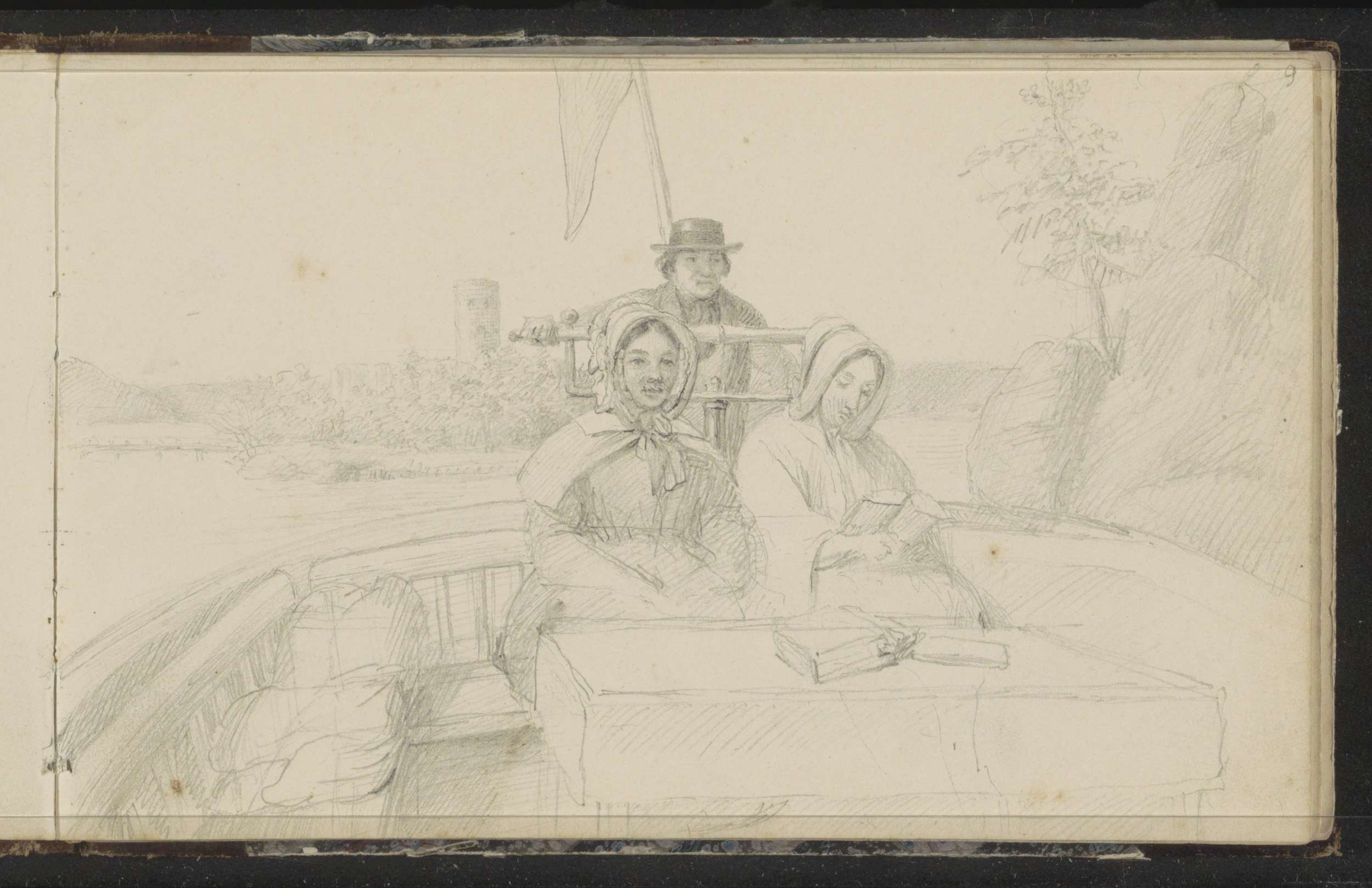 Twee vrouwen en een schipper op een boot