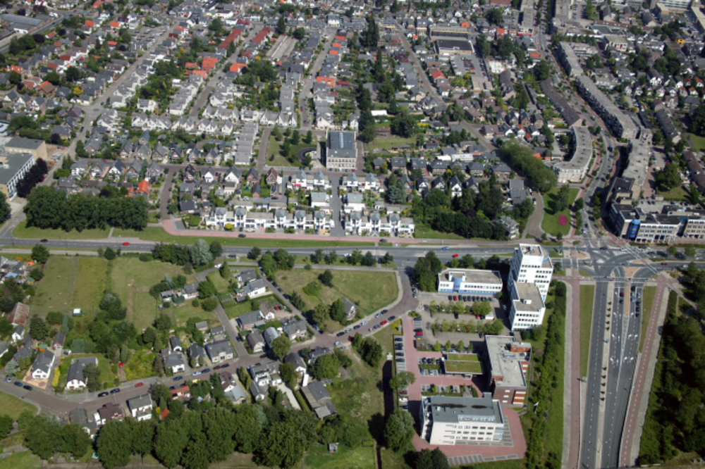 landschap met villaatje aan straat