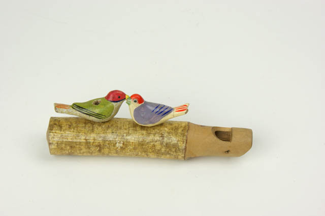 Tweetoonsfluitje van hout met 2 vogeltjes