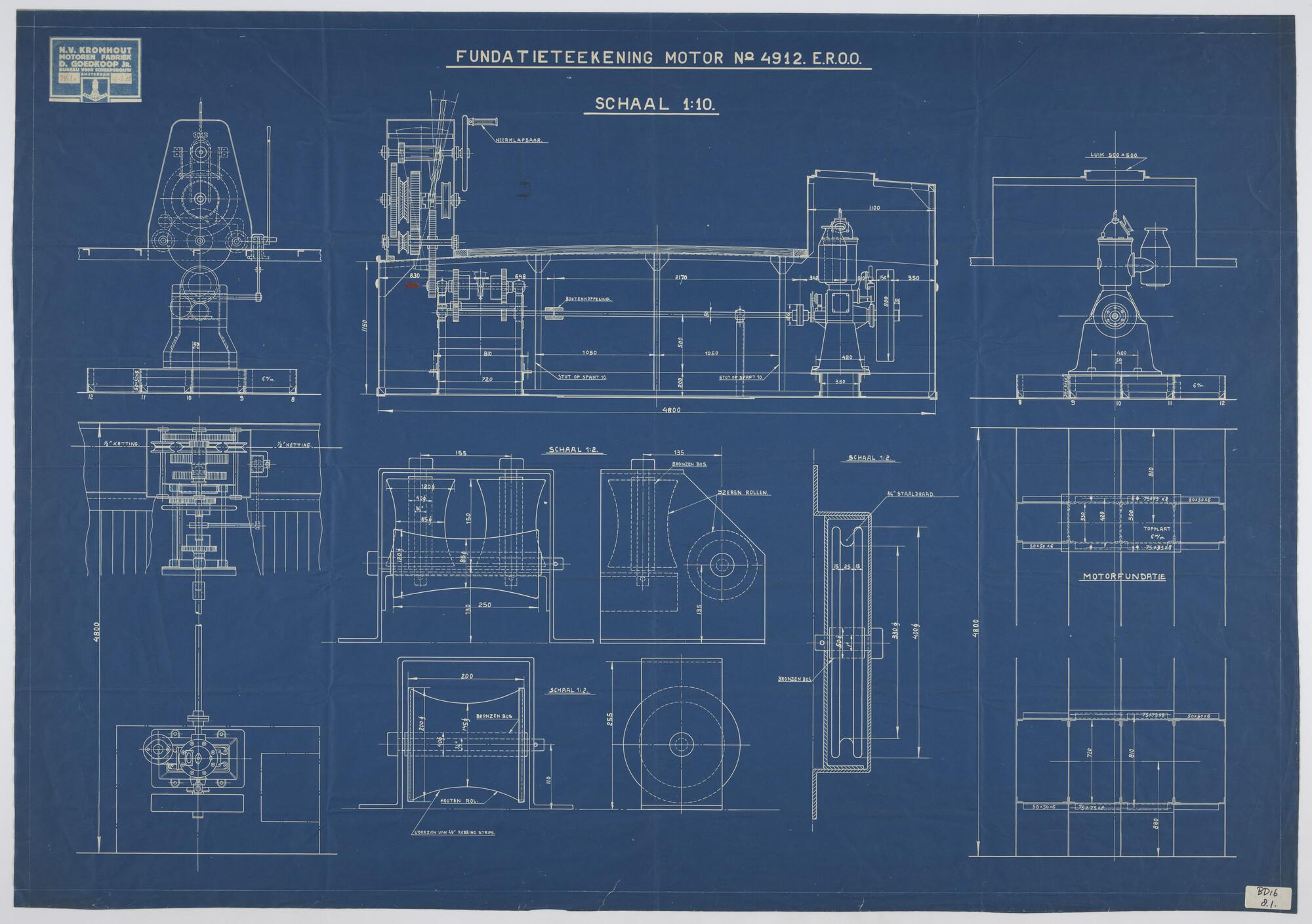Fundatietekening van motor voor jaagpont met 1 cilin...