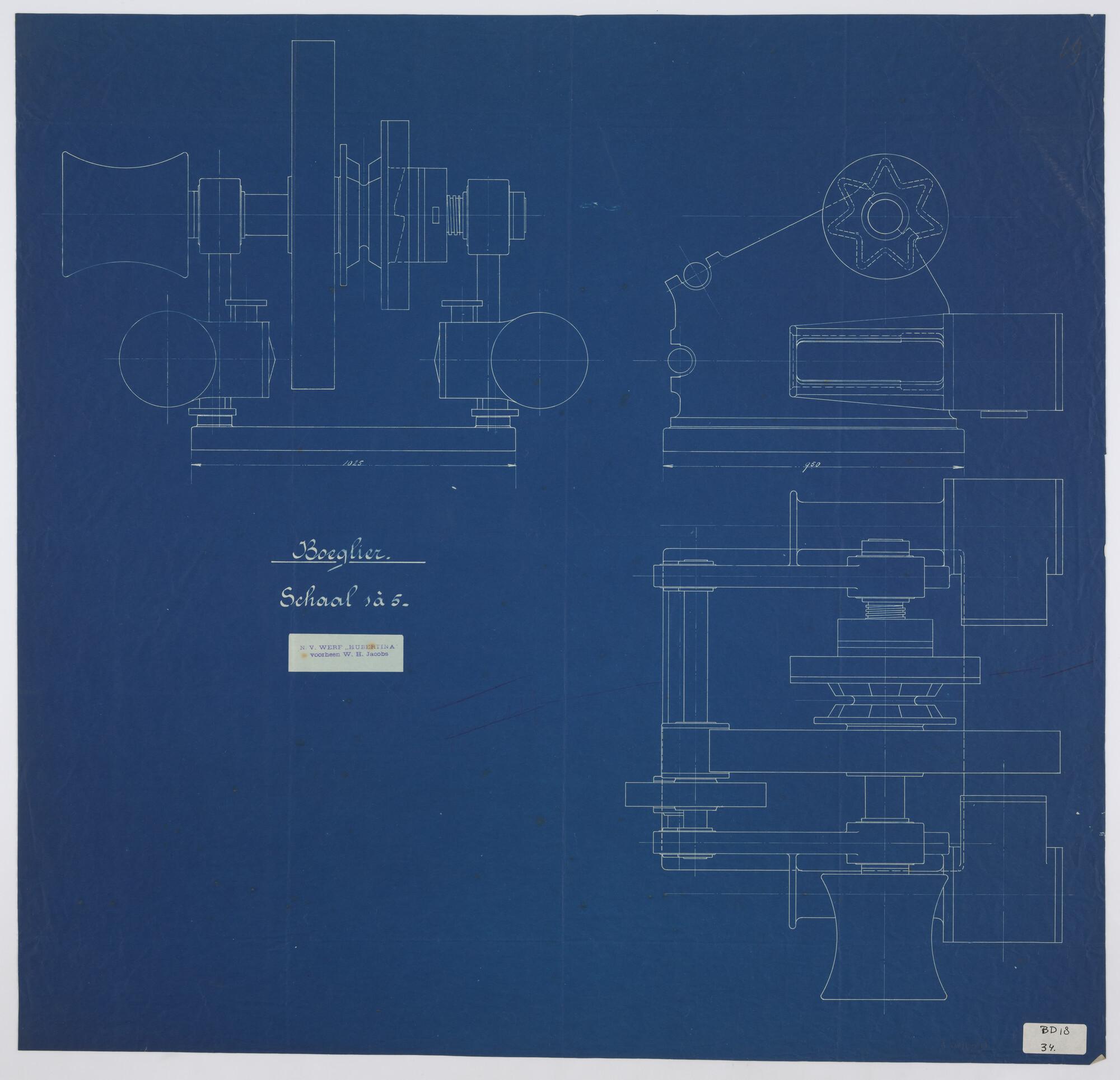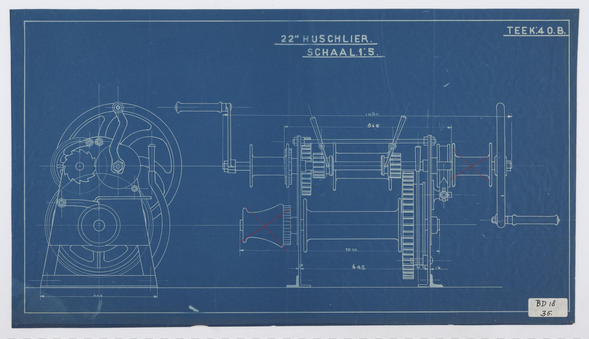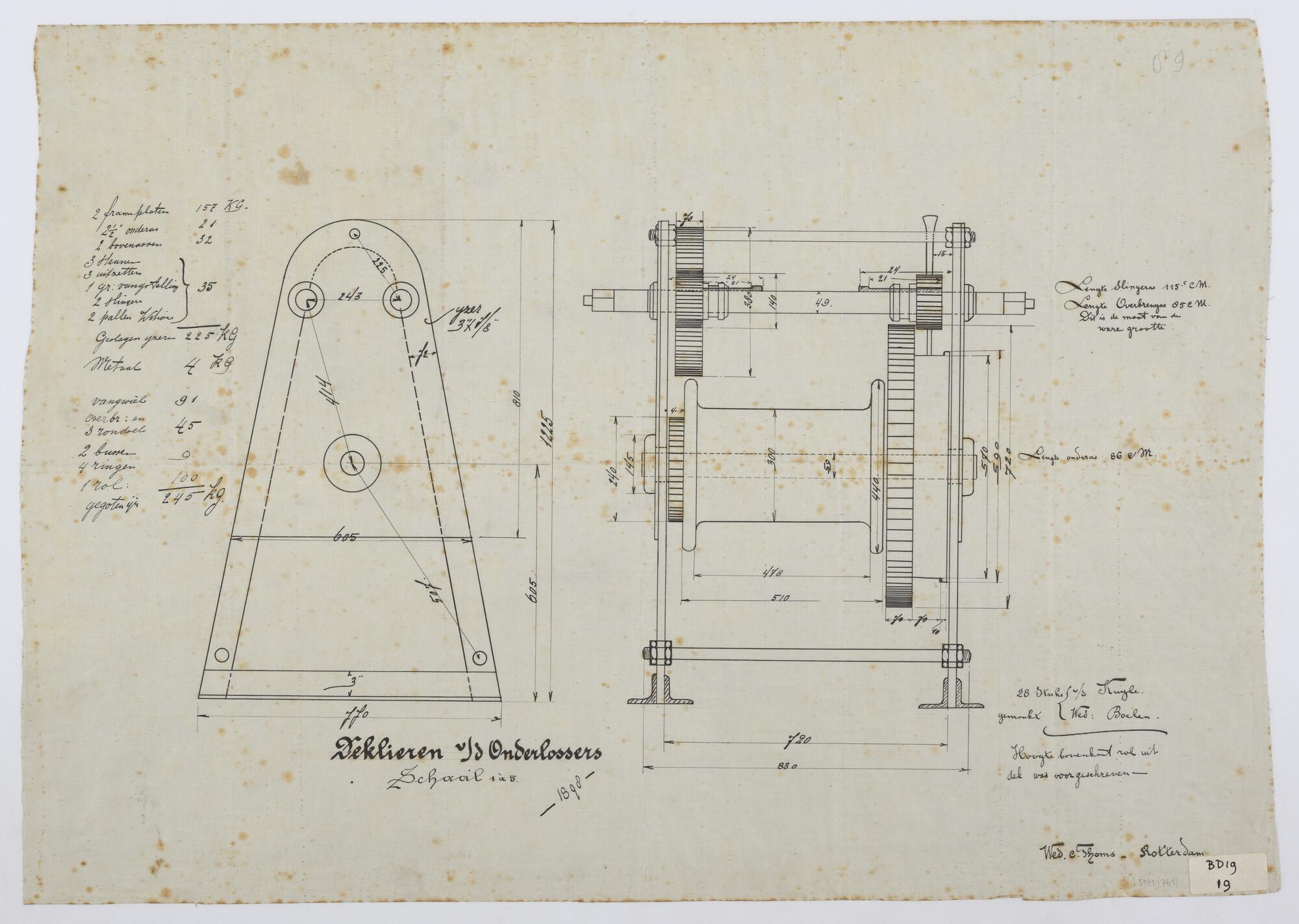 Plan van een Hollandse stoomlandbaggermolen op rails