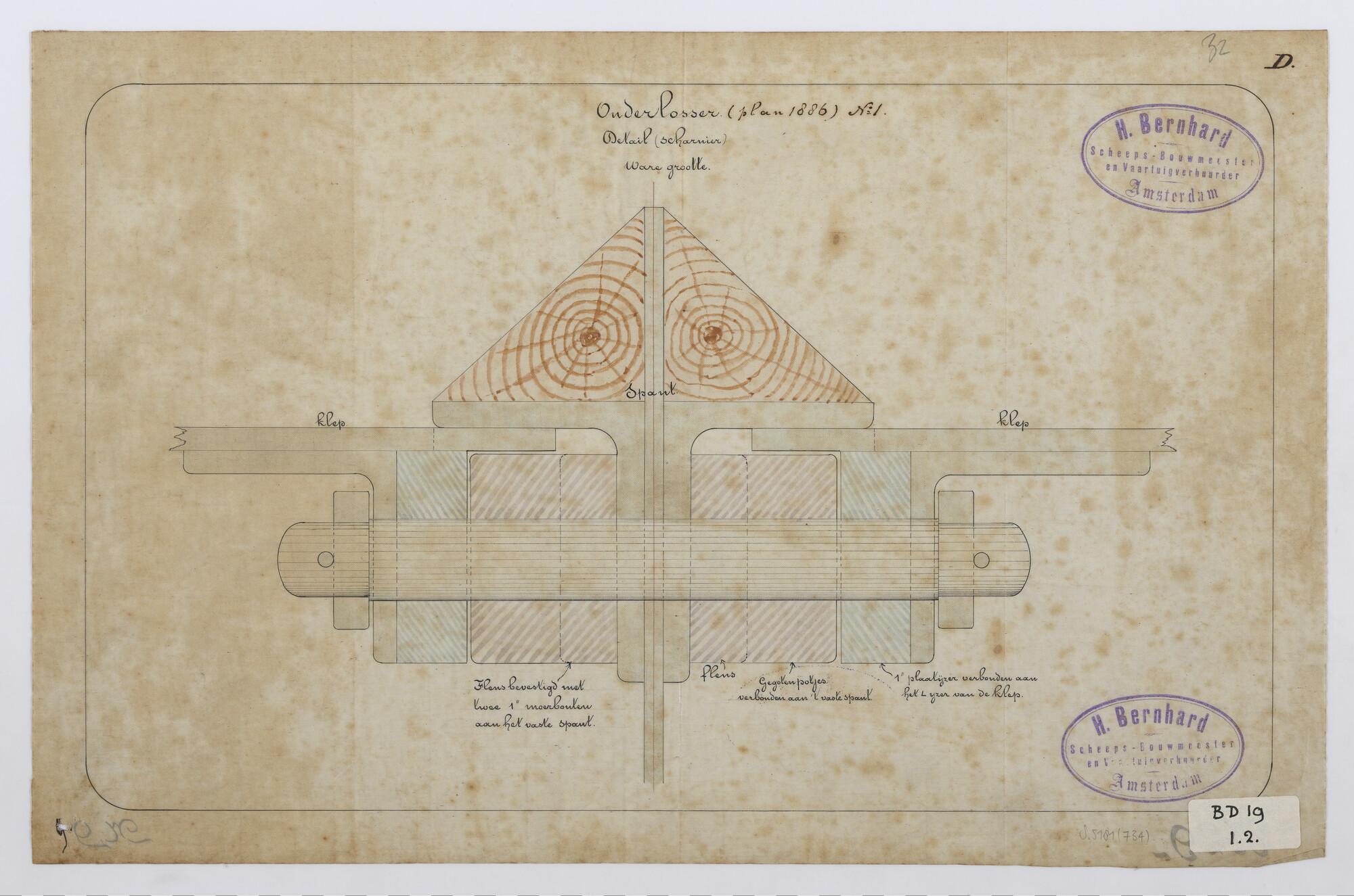 Algemeen plan van een houten onderlosser van 42.40 m...
