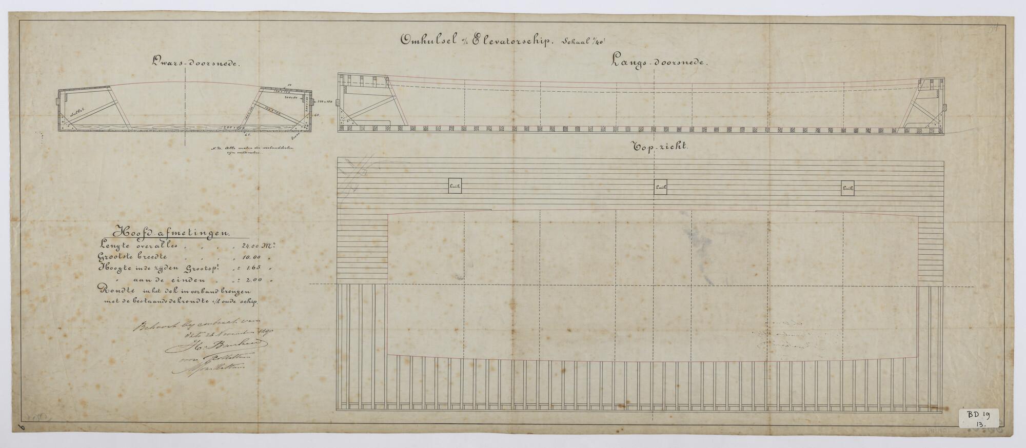 Algemeen plan van een baggermolen, met 10m baggerdiepte