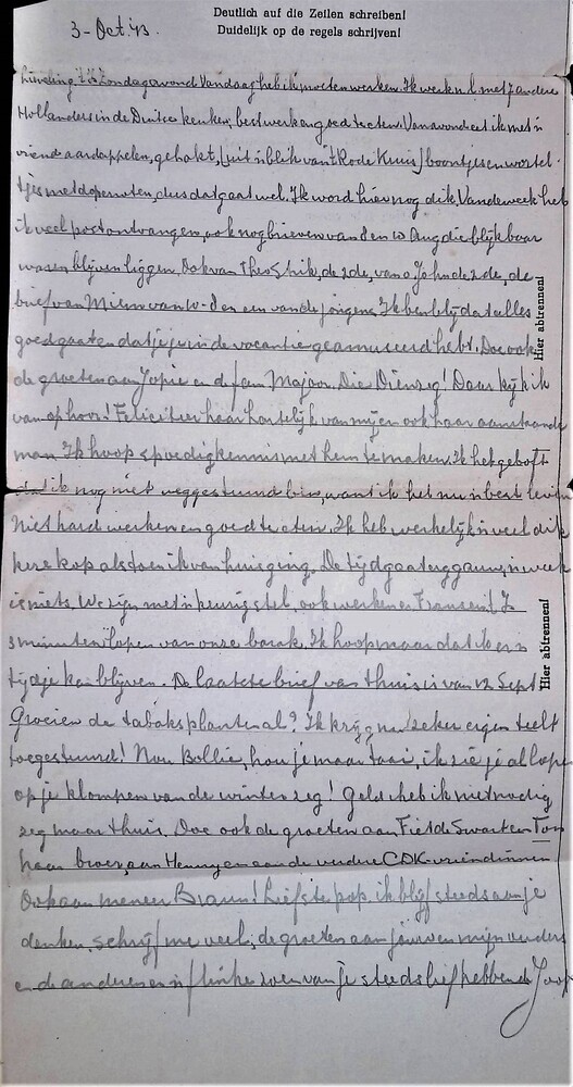 Brief aan Hubert van Ella d.d. 18-10-1943