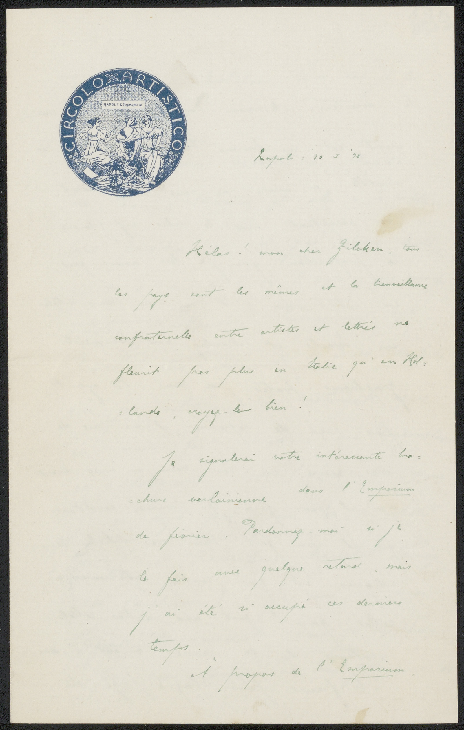 Brief aan Philip Zilcken