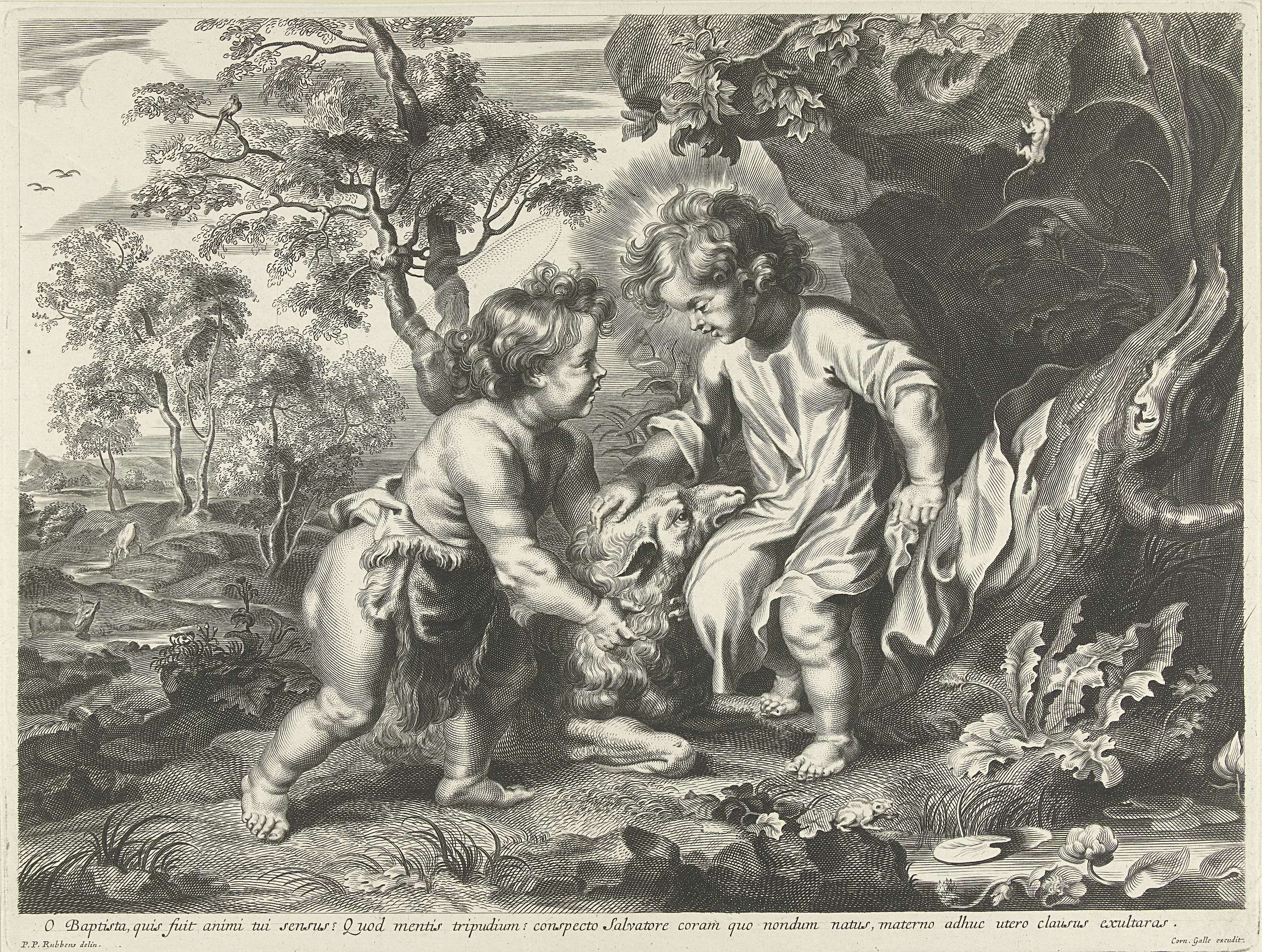Johannes de Doper wordt begeleid door engeltjes als ...