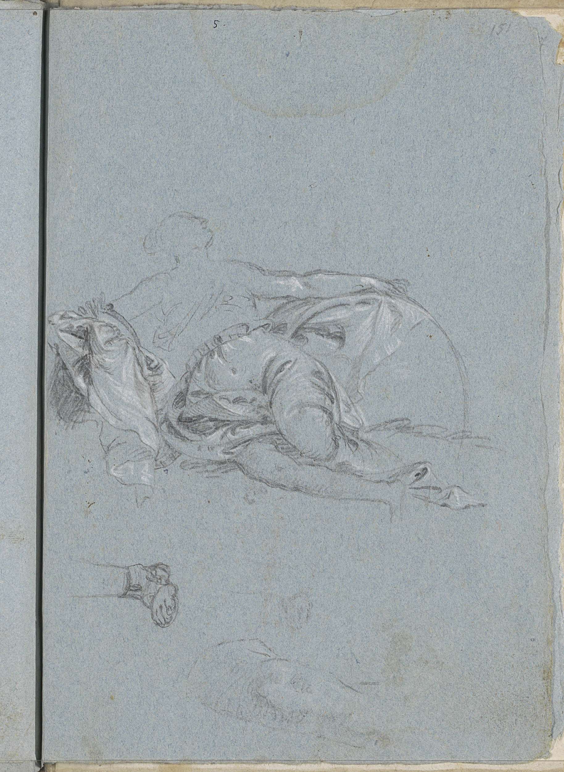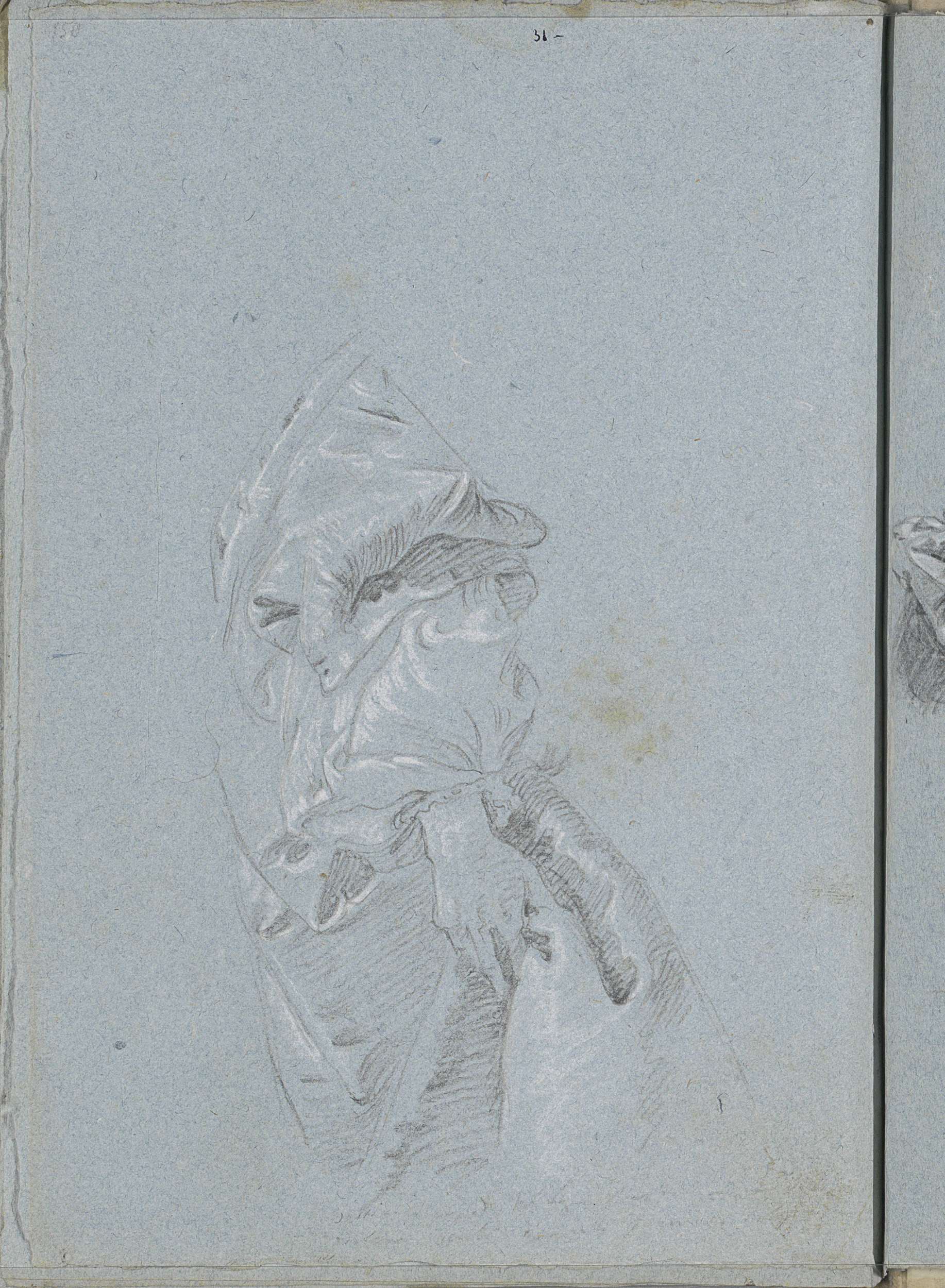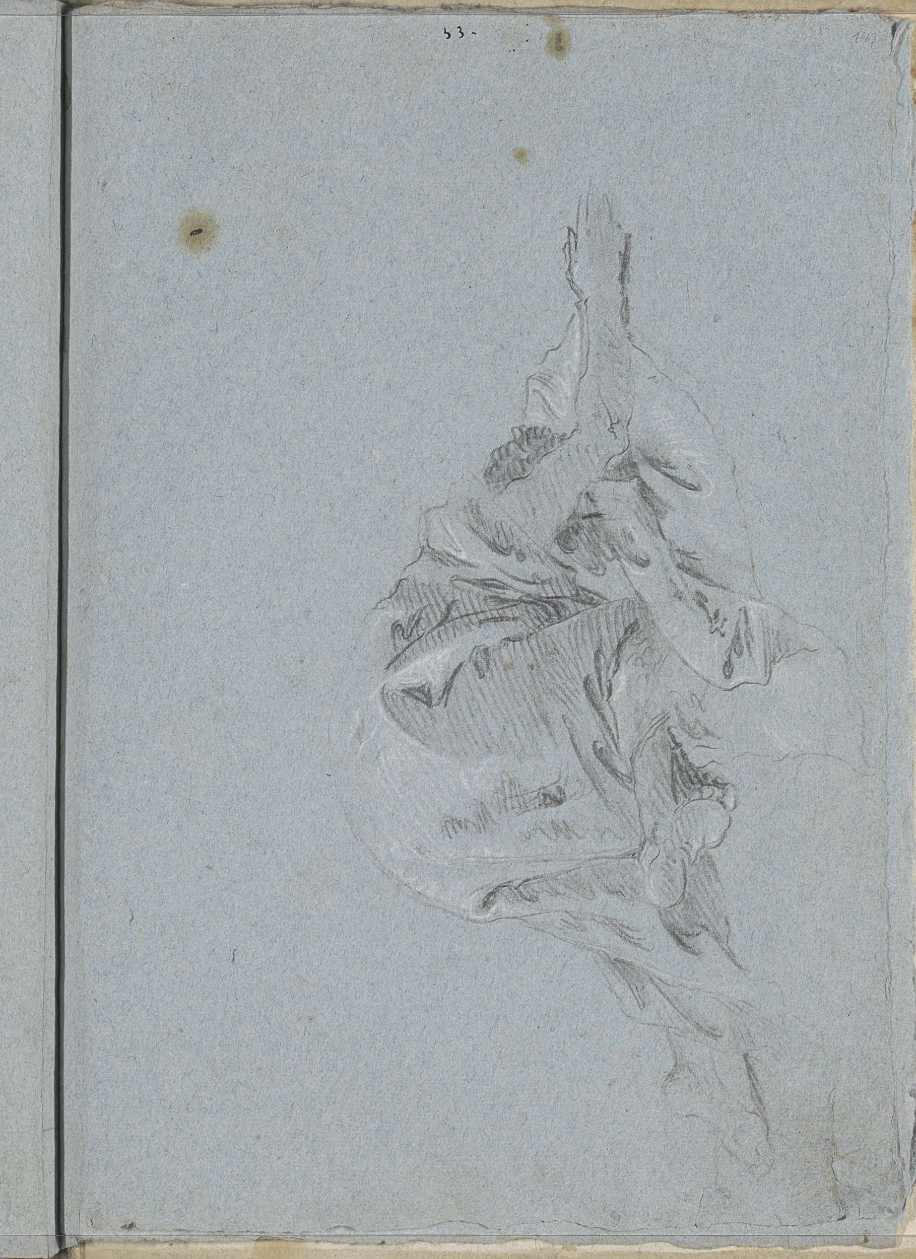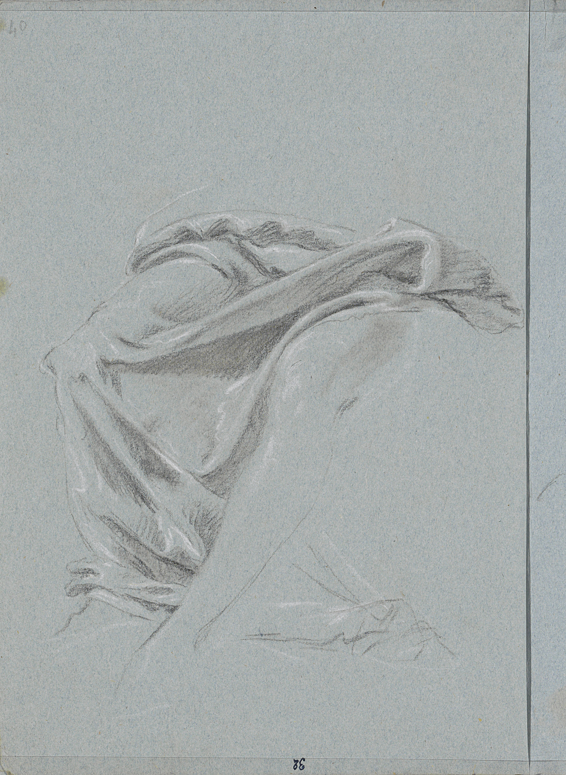 Gebogen arm, een hand en draperie