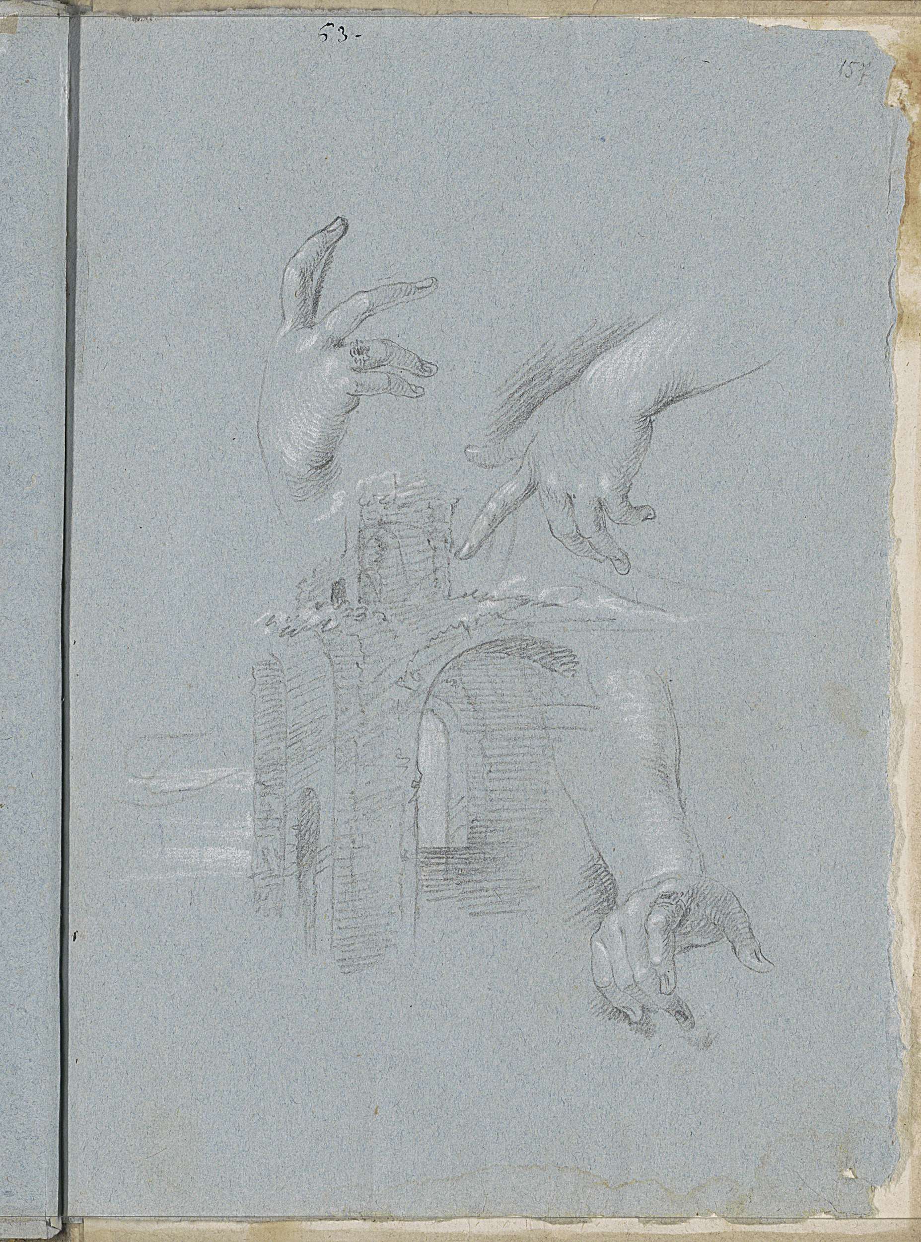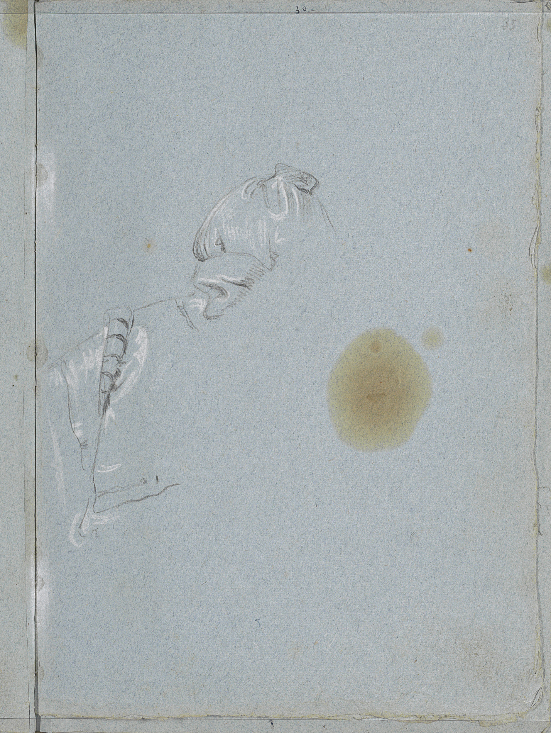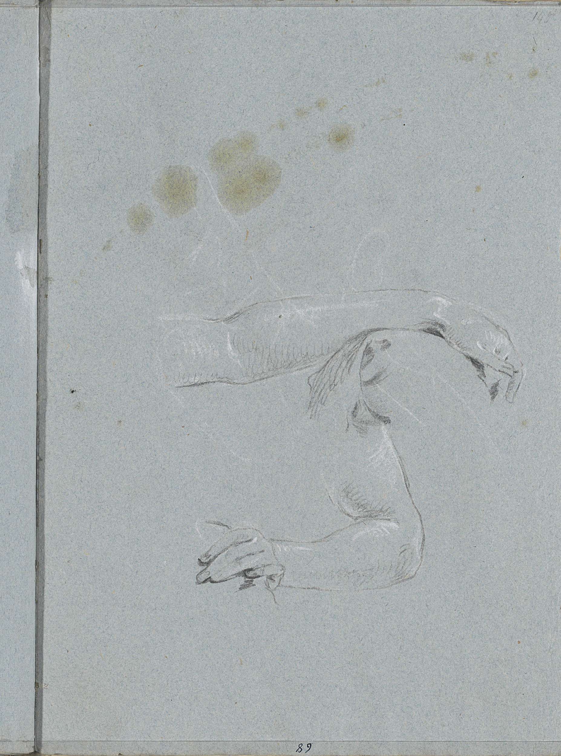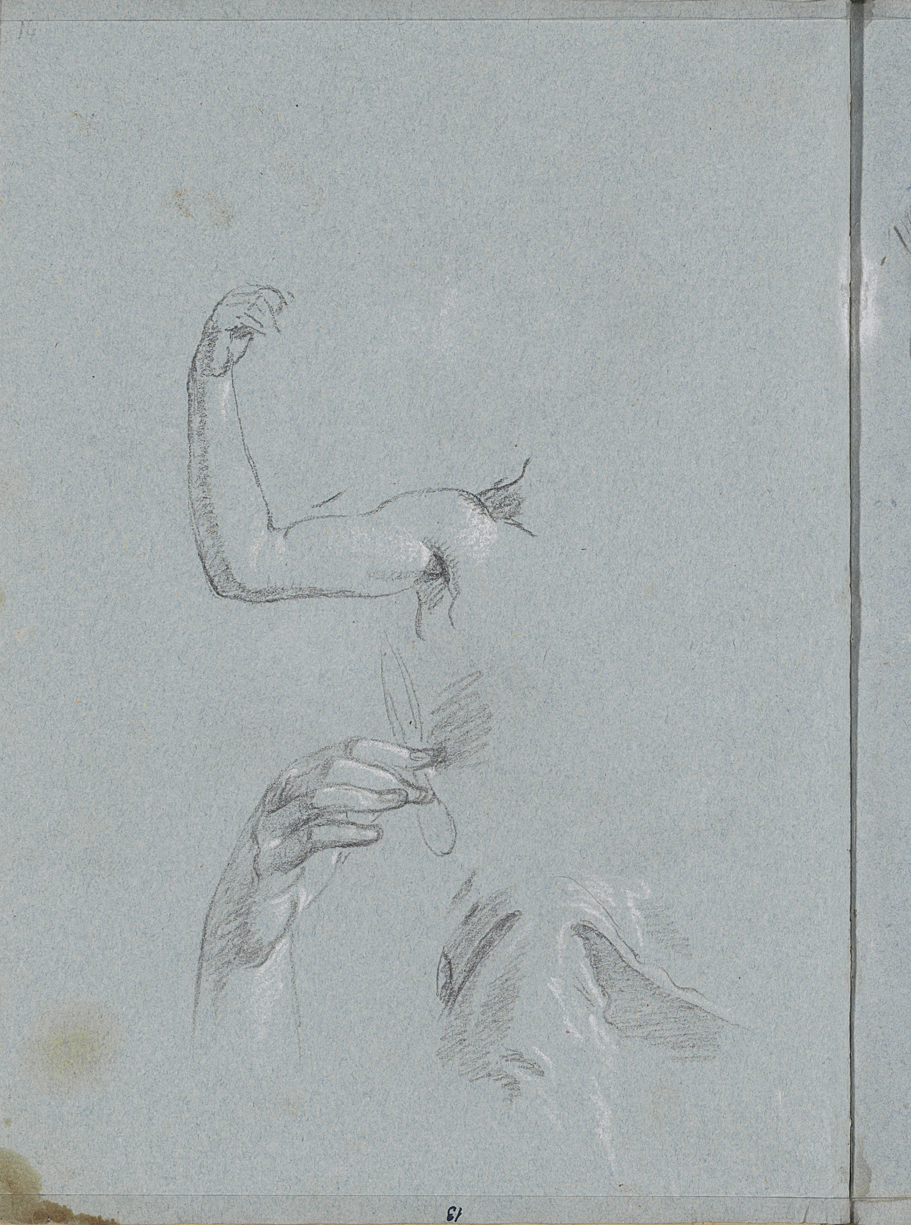 Gebogen arm, een hand en draperie