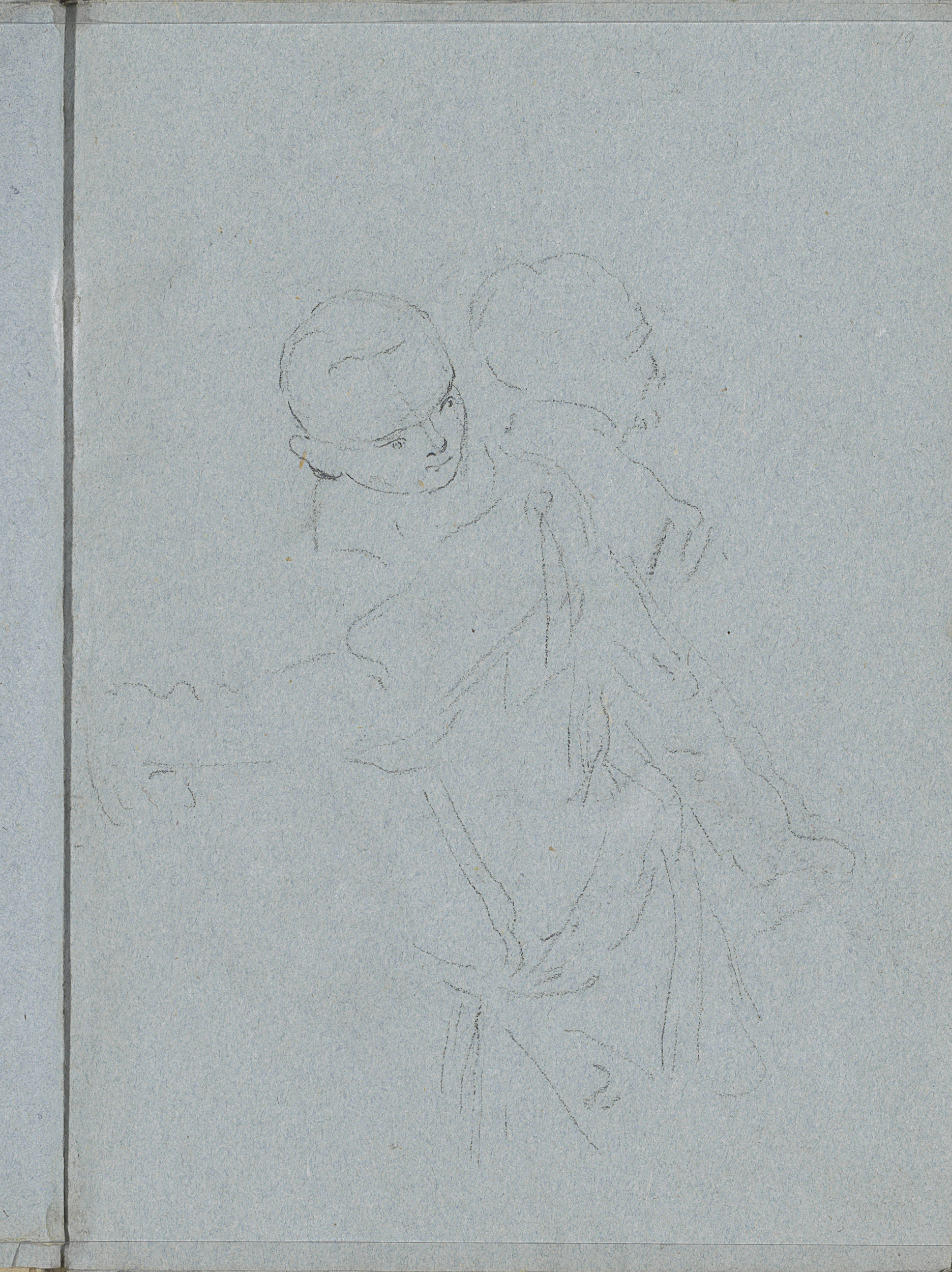 Hoofden van een jongen en een figuur