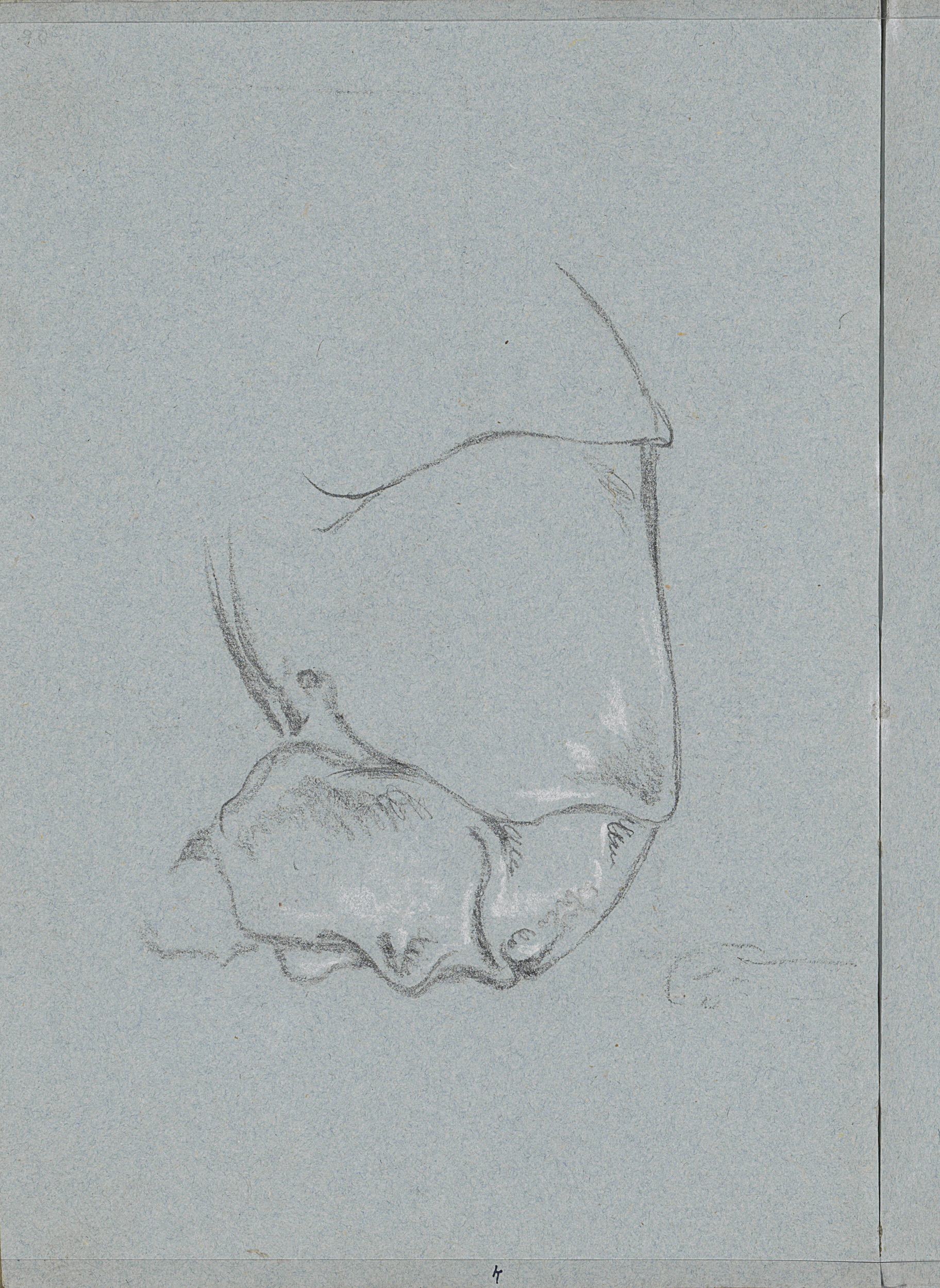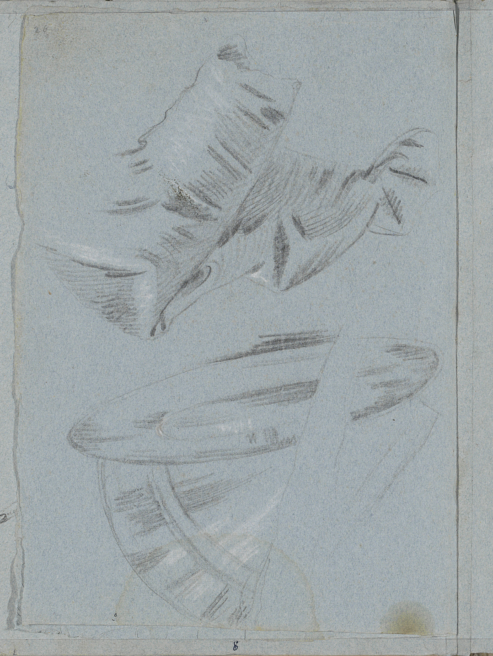 Draperie, een vliegende putto en borsten