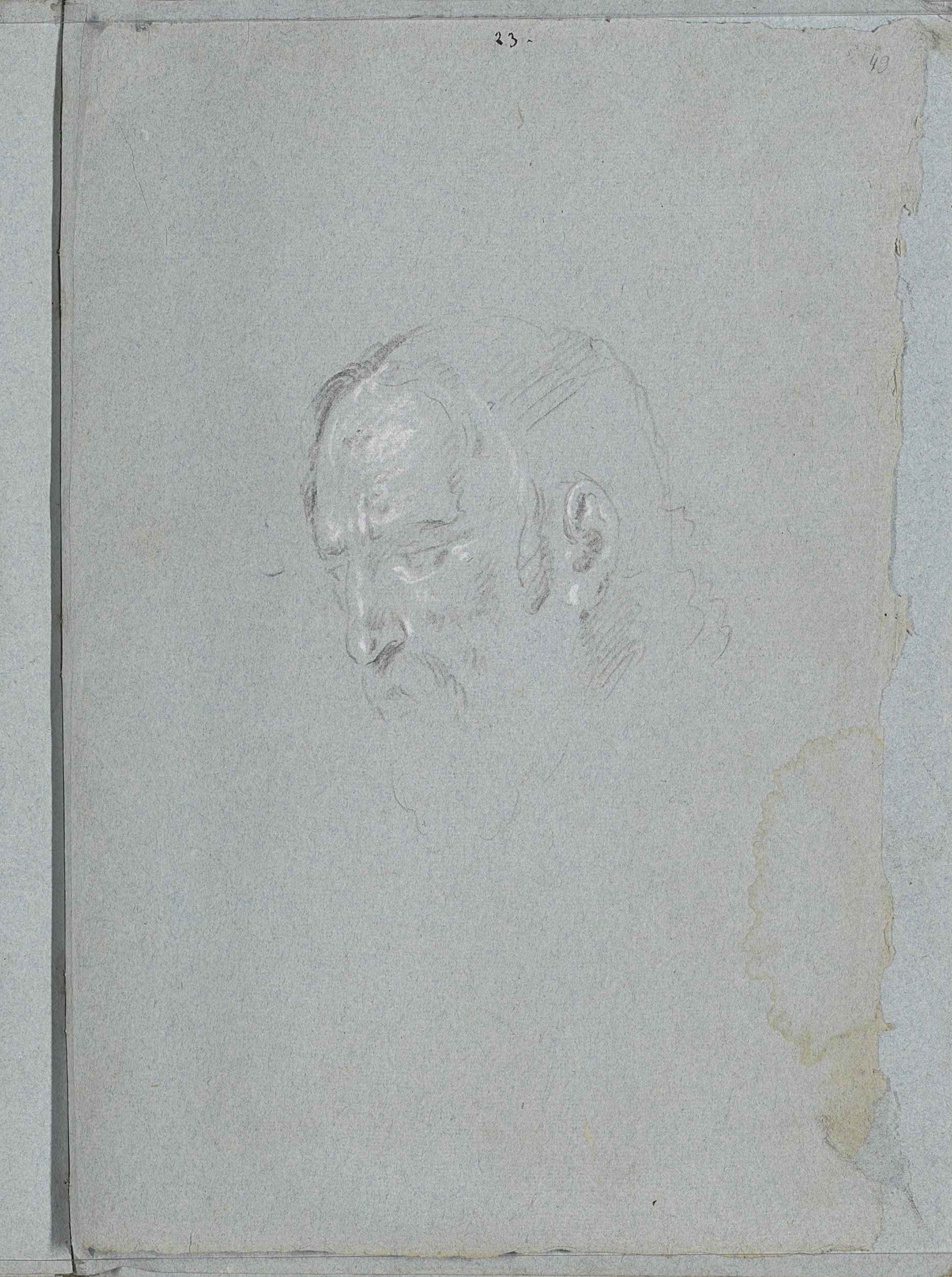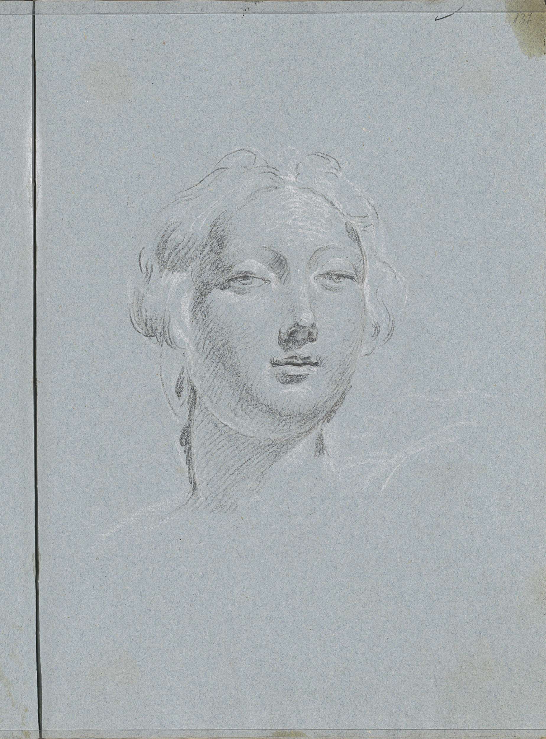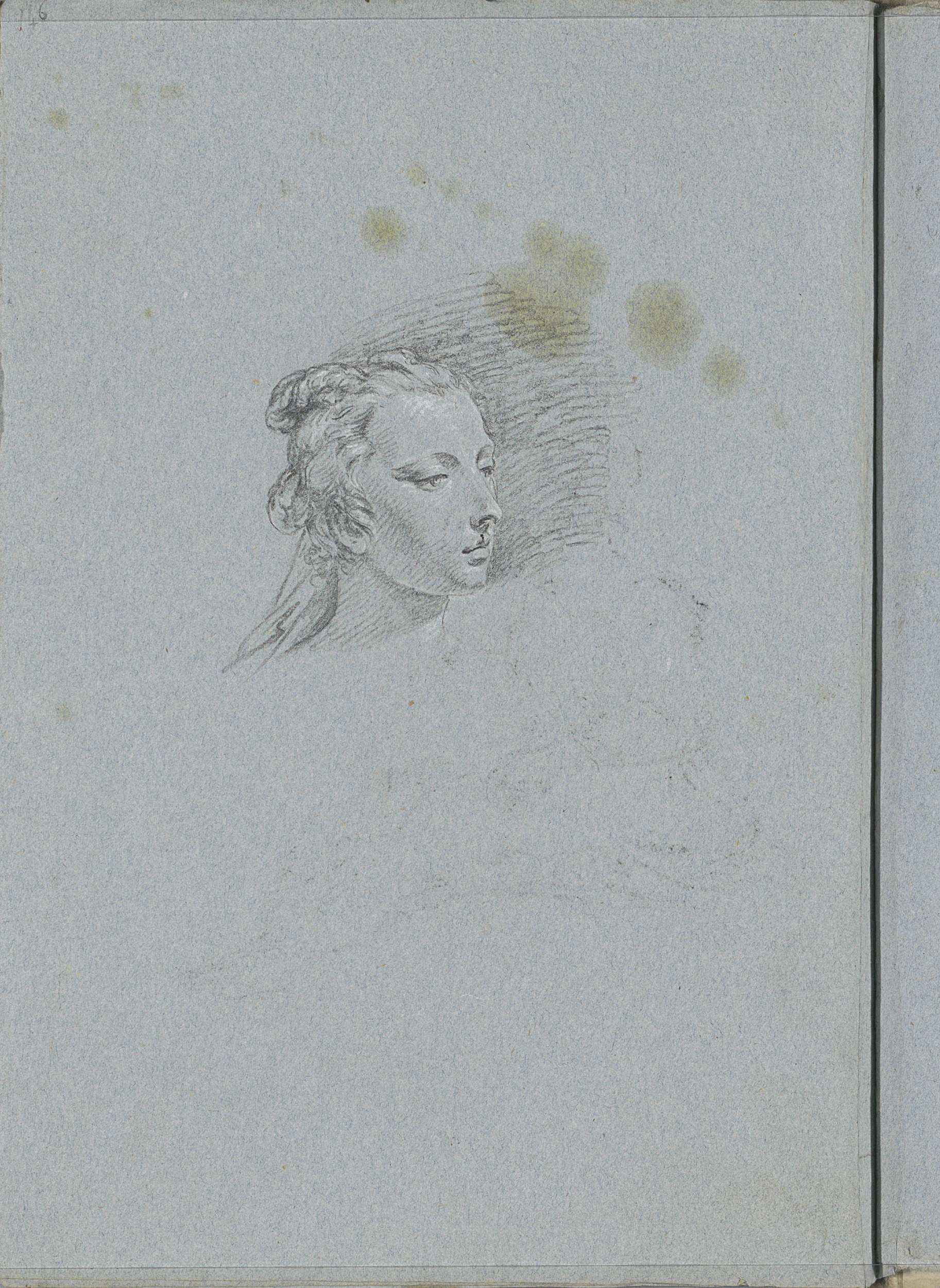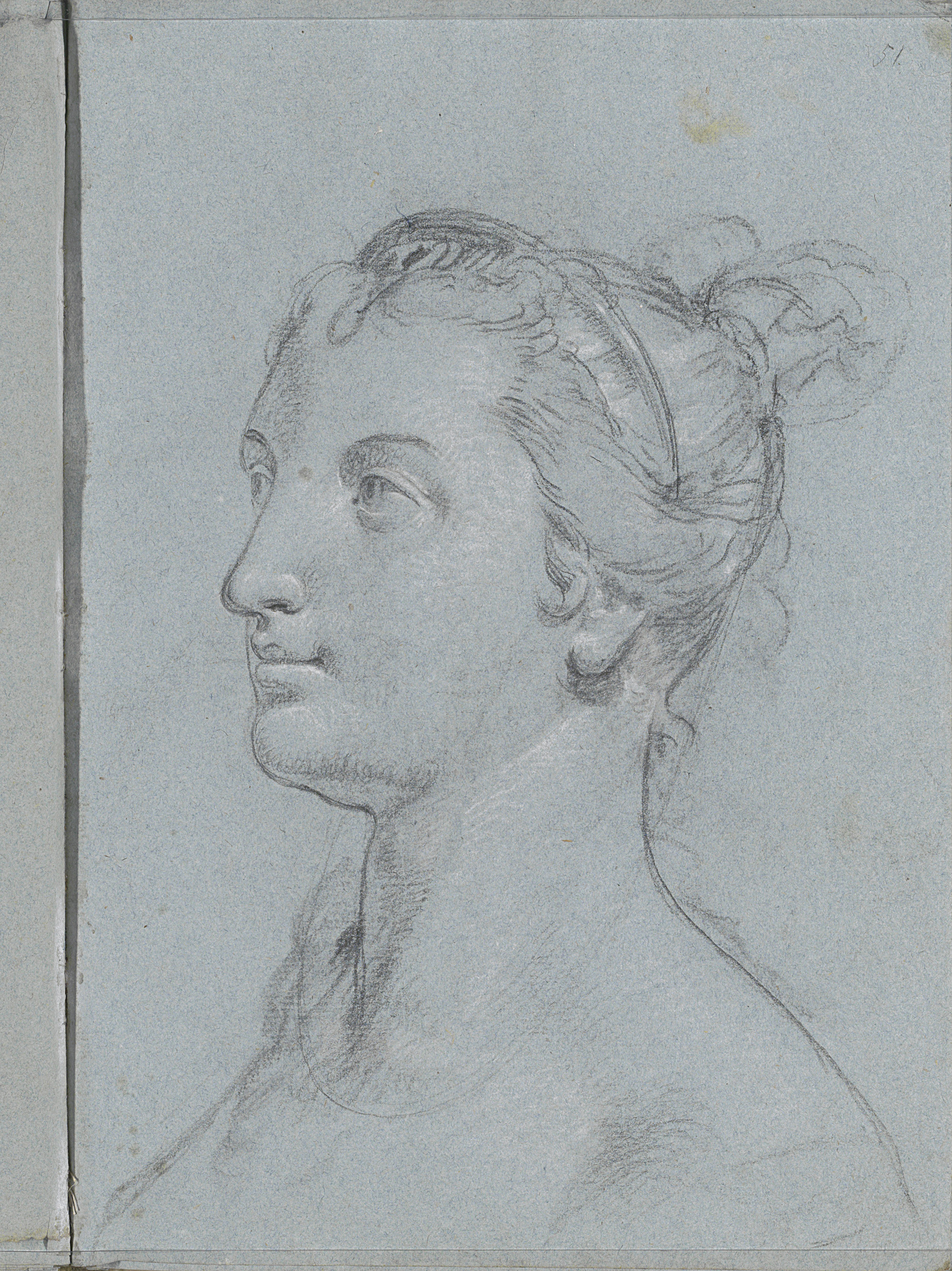 Kop van een vrouw met opgestoken haar