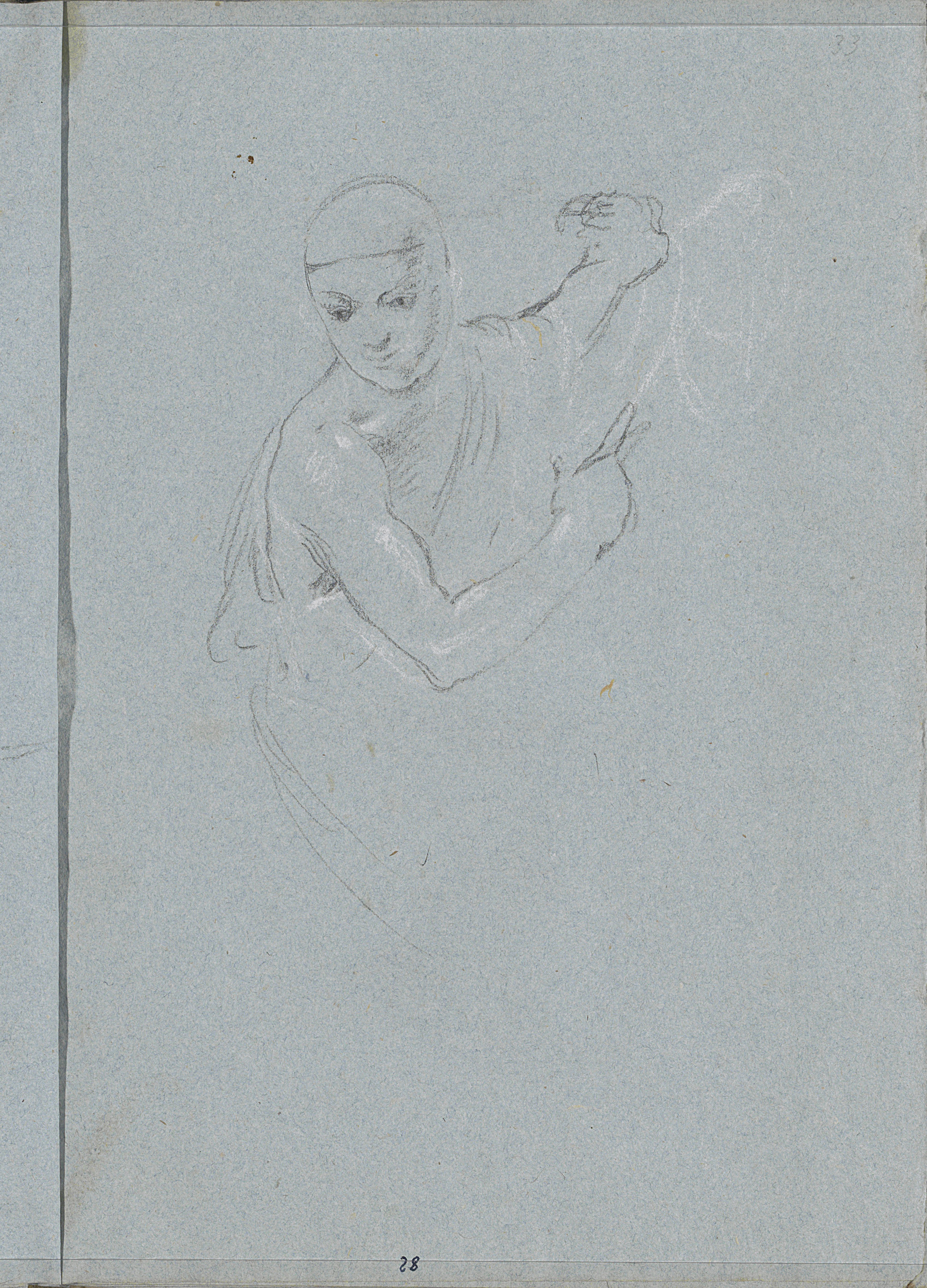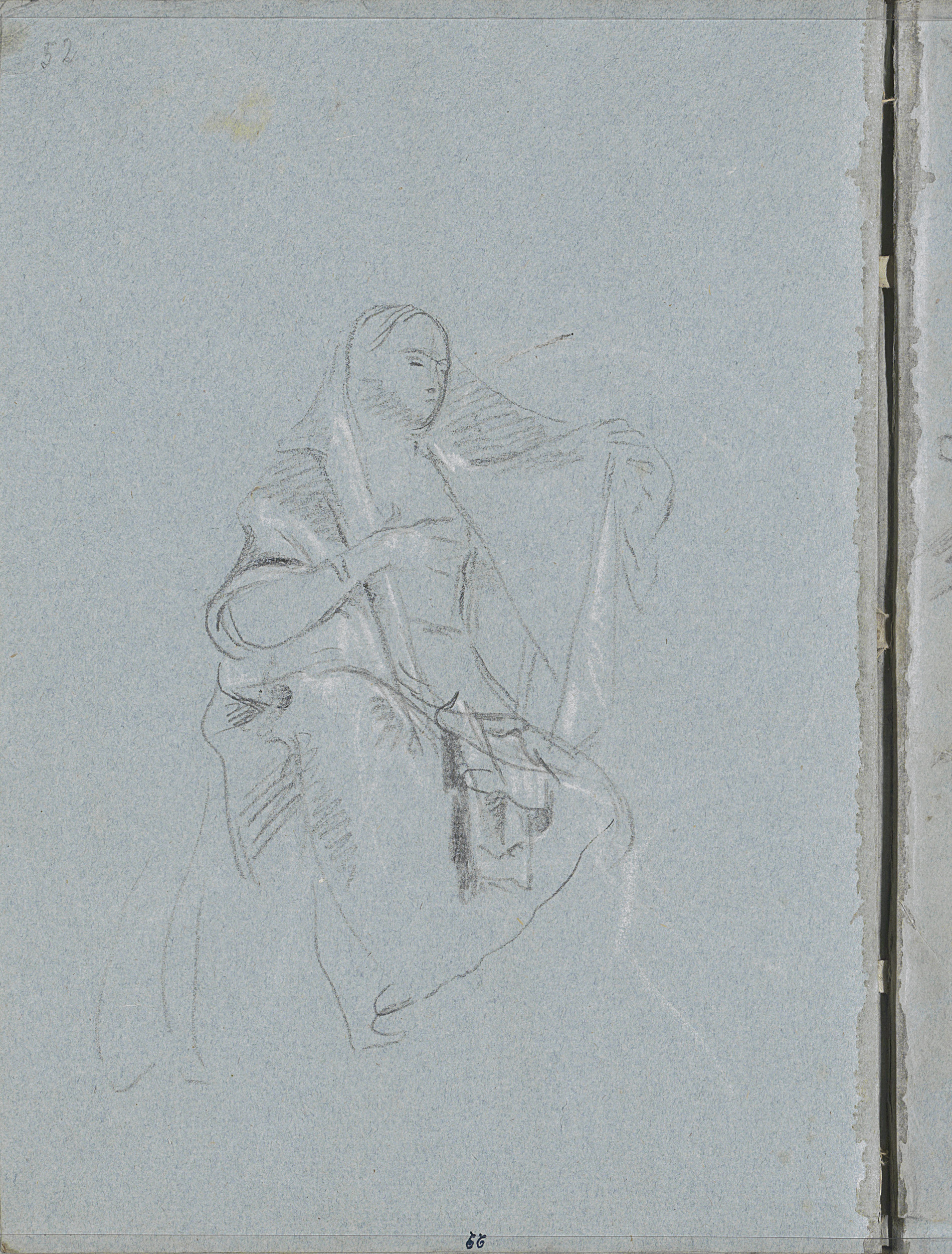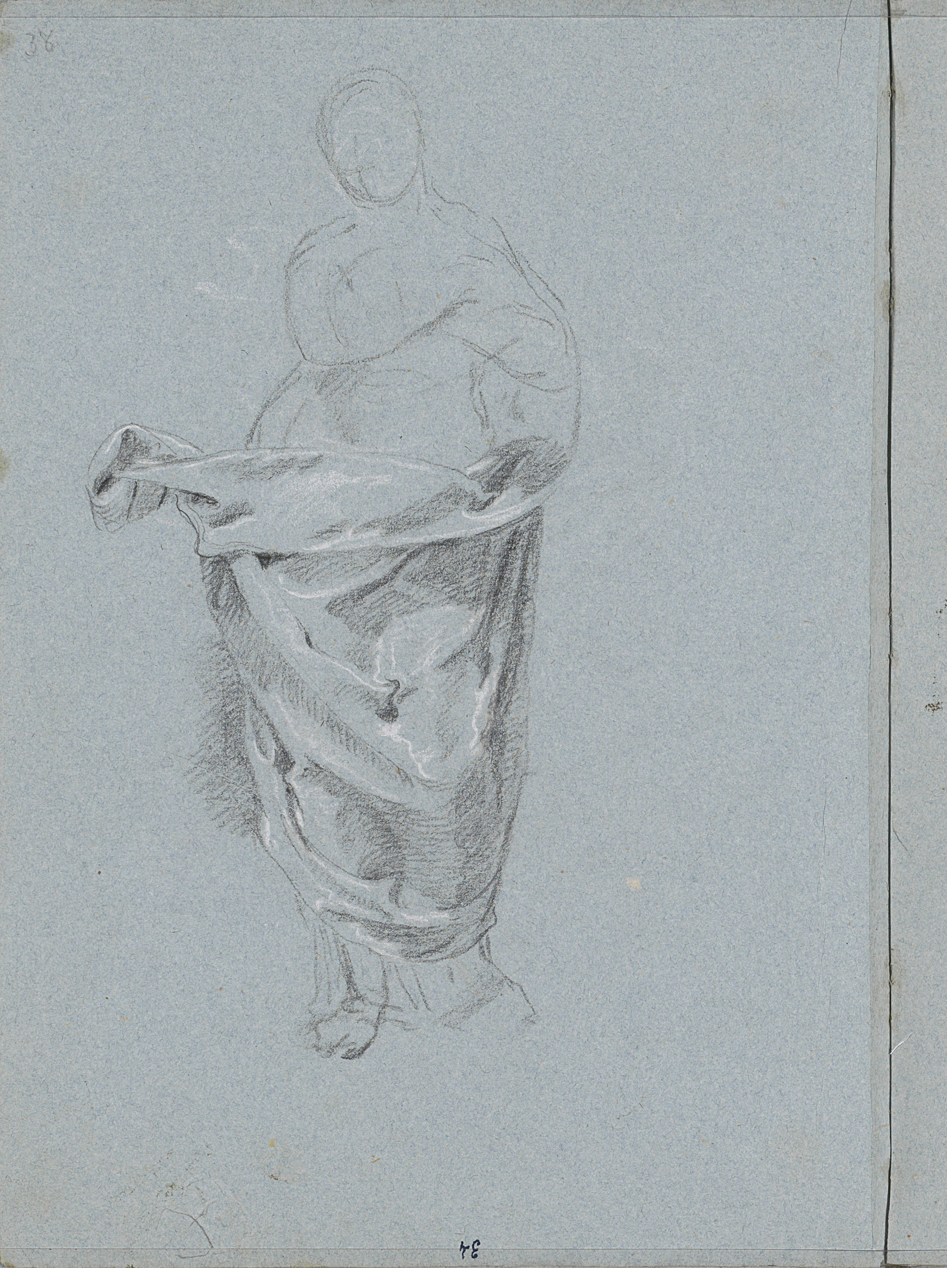 Halfnaakte staande vrouw met draperie