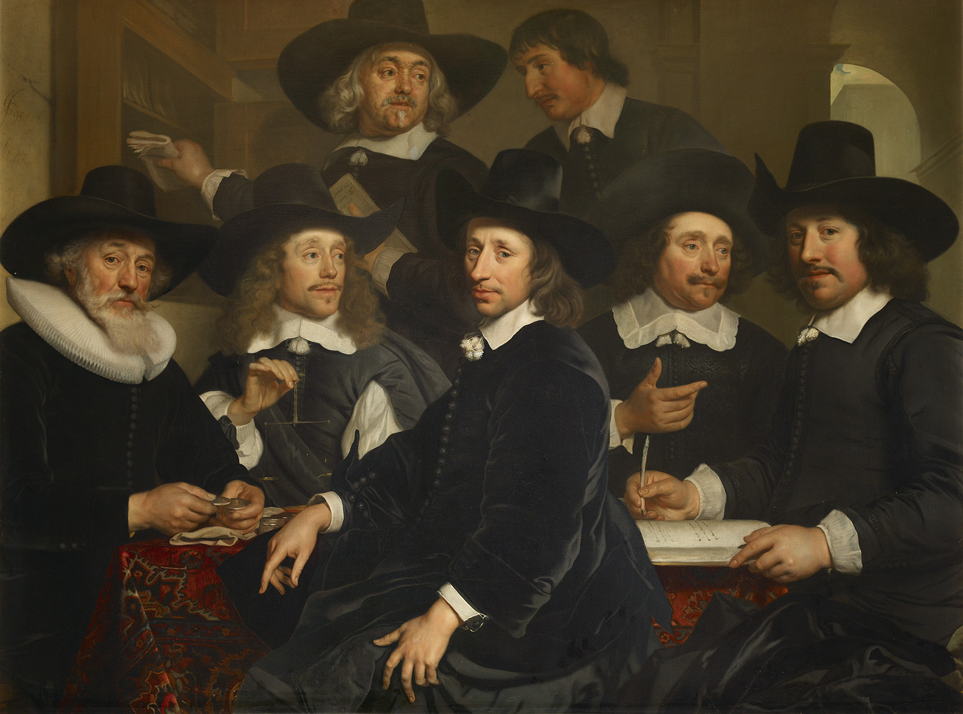 Zes regenten en de binnenvader van het Oudezijds Hui...