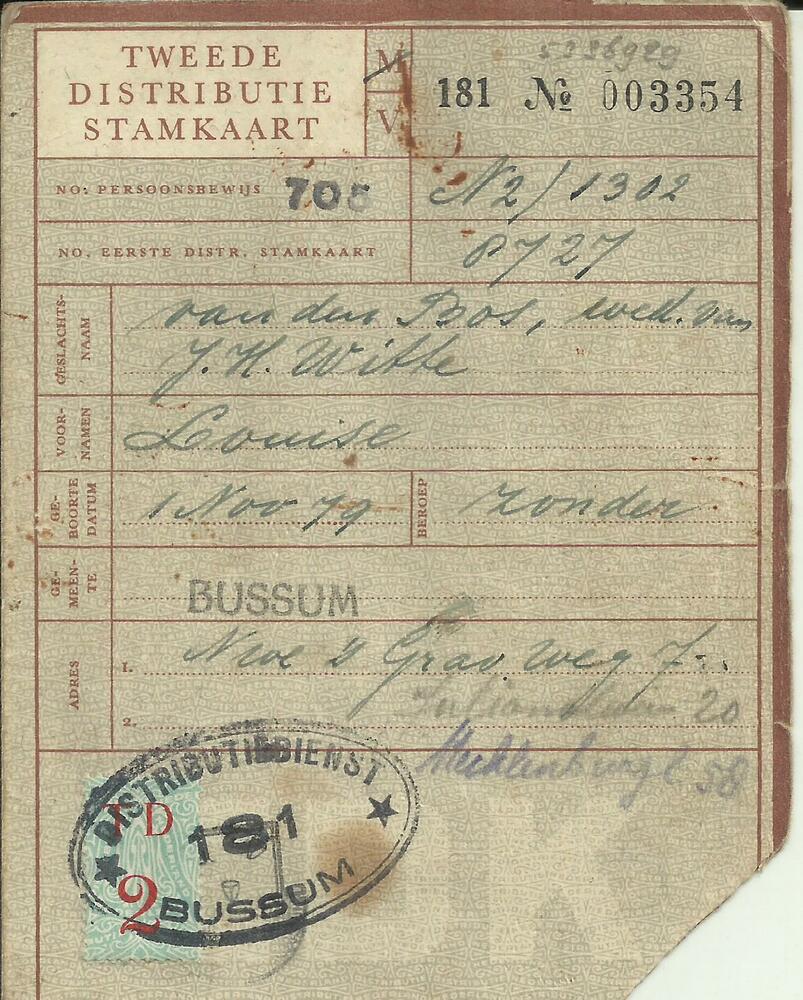 Tweede Distributiestamkaart op naam van Bos, van den...