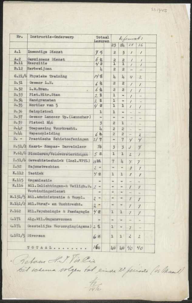 trainingsschema, ongedateerd.