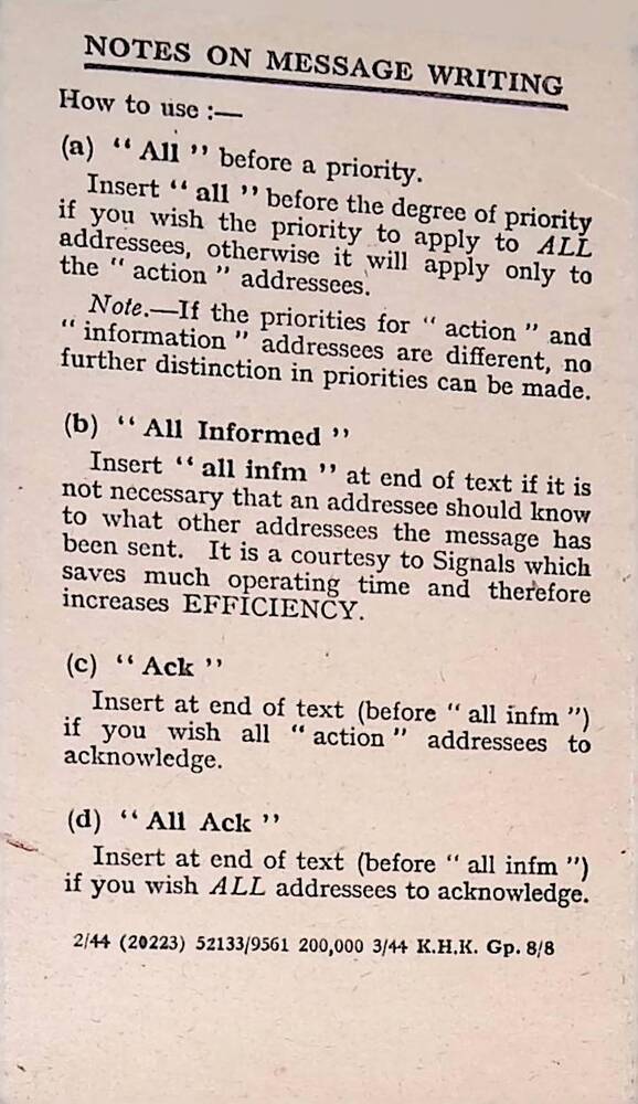 Massage Writing and RT 1944