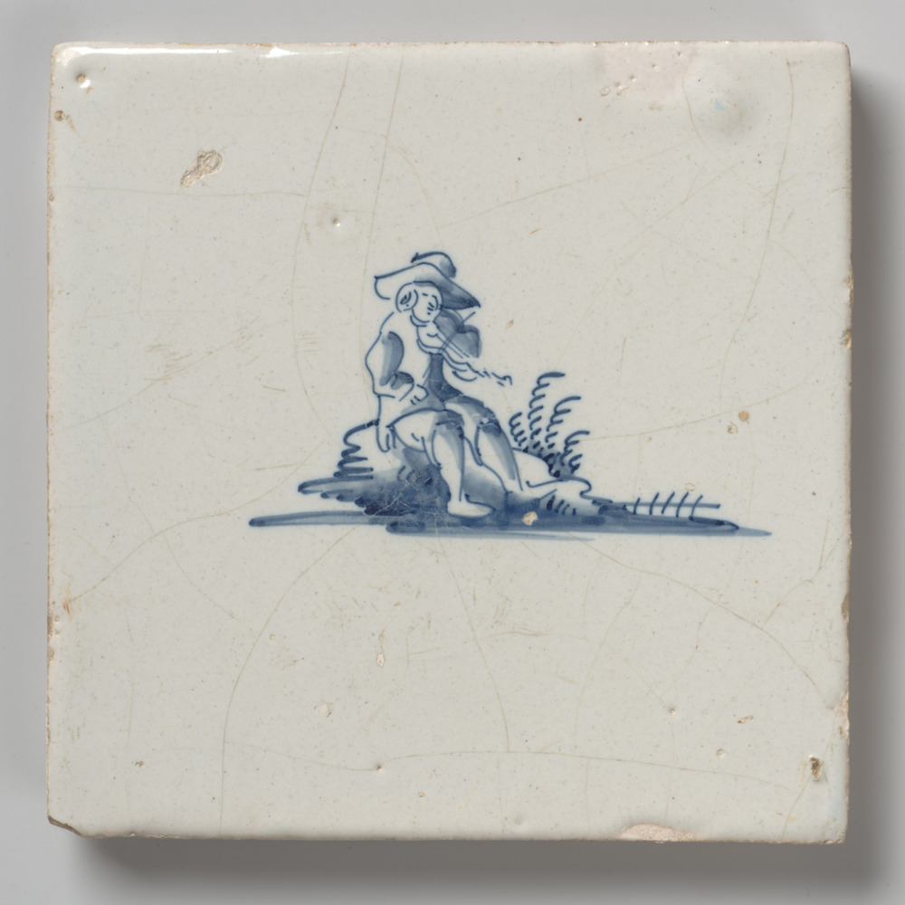 tegel van aardewerk met tinglazuur, voorstellende: h...