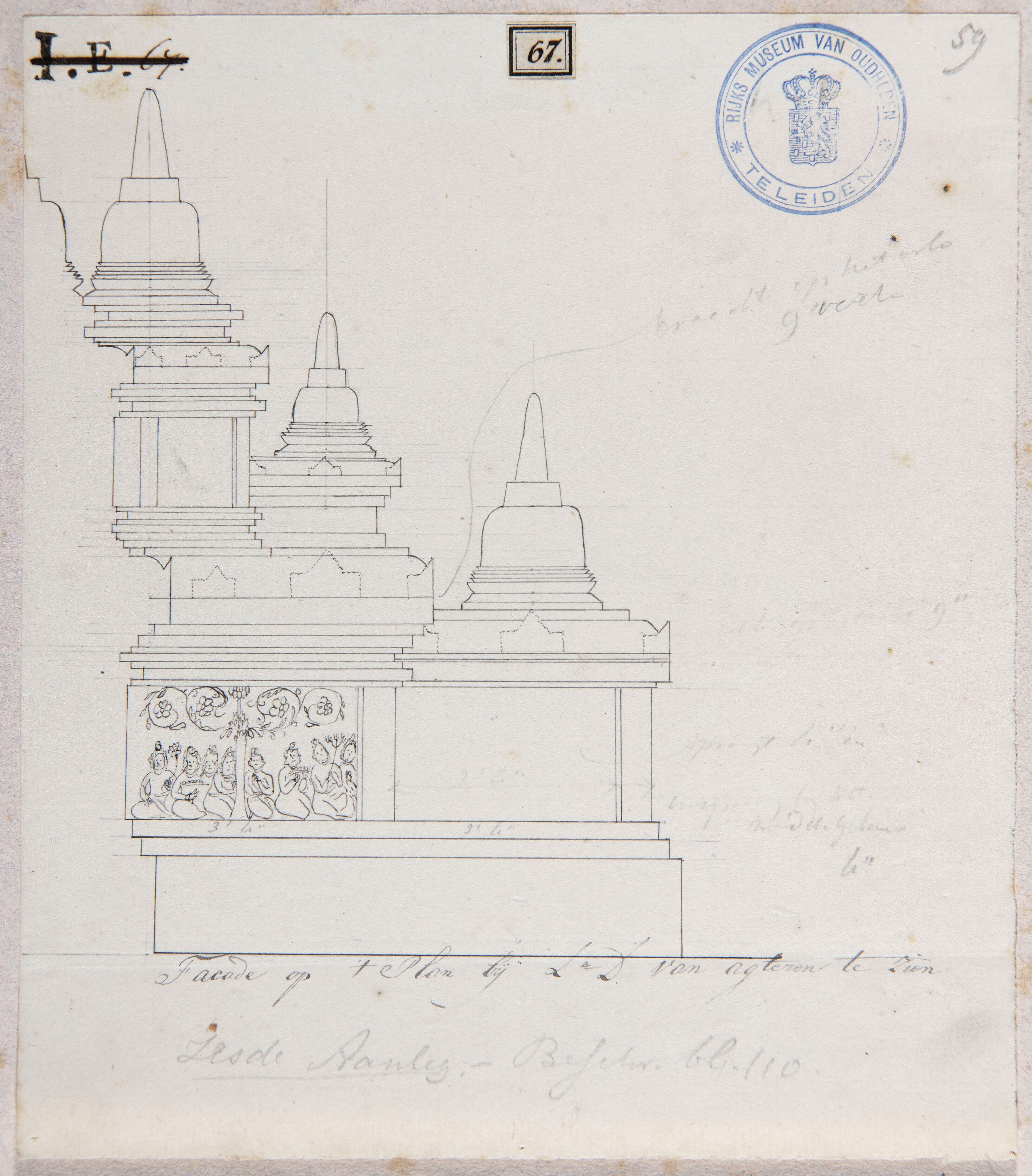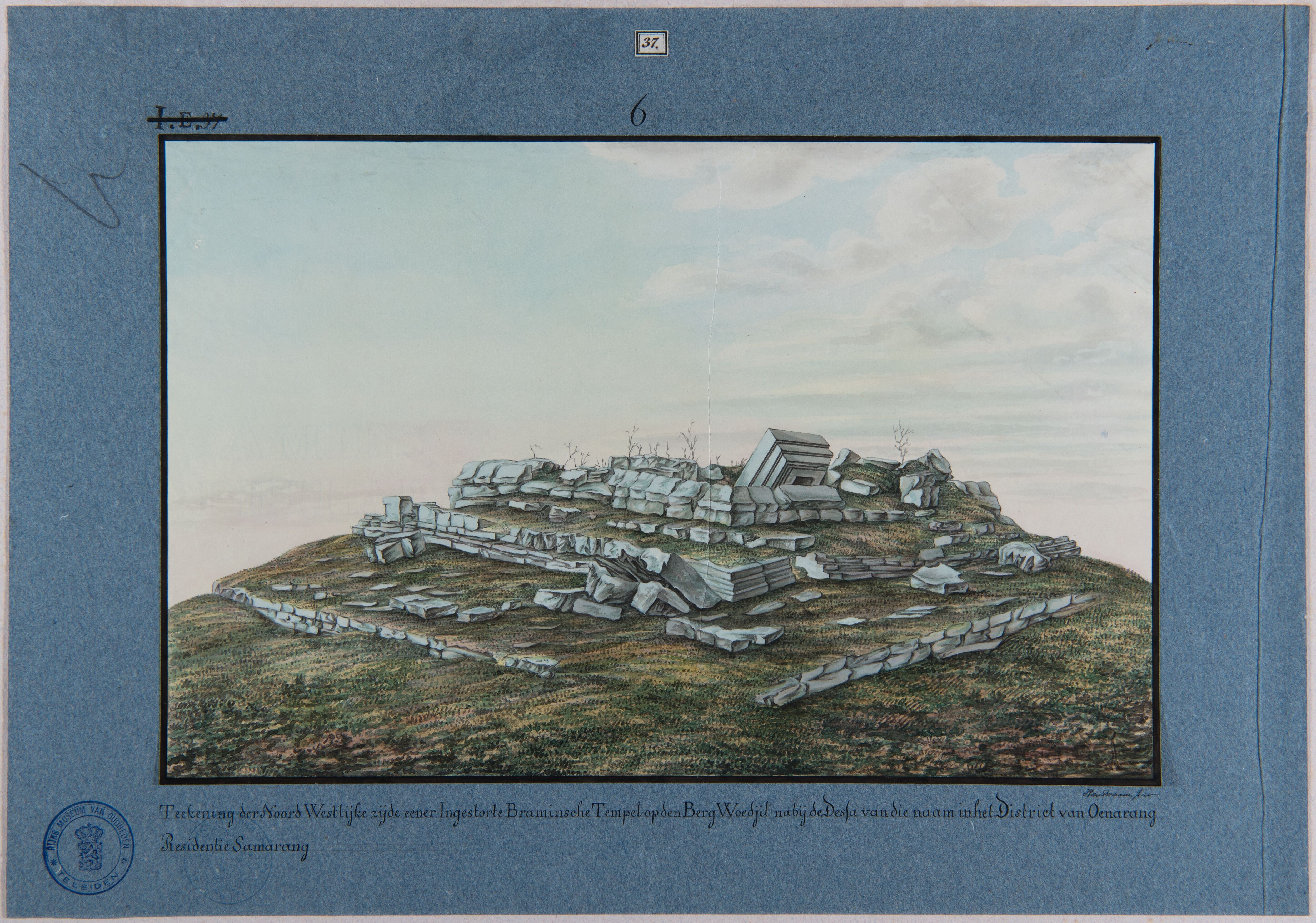Aquarel: Gezicht op de bouwvallen van een tempel van...